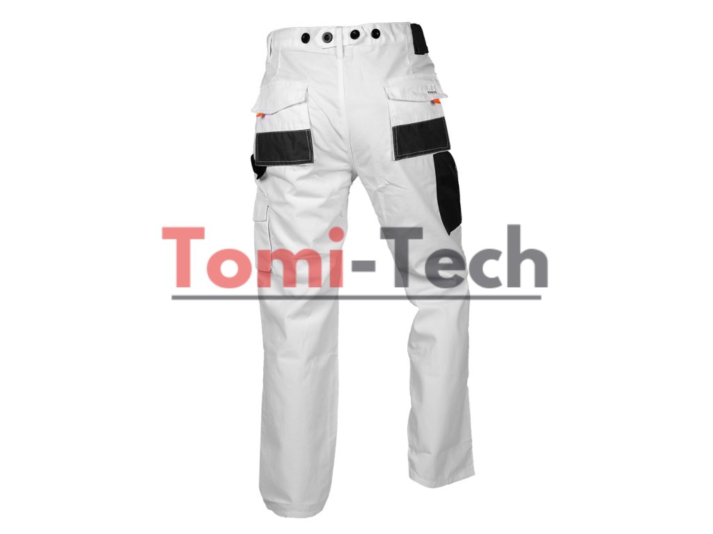 Pracovné nohavice, biele, veľkosť XXL/58, 35 % bavlna, 65 % polyester, 267 g/m2, výstuhy z oxfordskej tkaniny, vystužené vrecká, trojité šitie, možnosť vloženia chráničov kolien, CE, EN ISO 13688:2013Dodatočné parametre