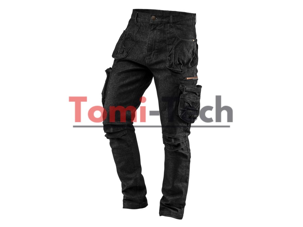 Pracovné nohavice DENIM s 5 vreckami, čierne, veľkosť S, 98 % bavlna, 2 % elastan, elastan pre lepšie padnutie a väčšie pohodlie, multifunkčné a priestranné vrecká, panel v rozkroku a pod kolenom pre zvýšené pohodlie, profilované koleno, ďalšie vrecko v spodnej časti nohavice, kožené výplne s logom, vnútorná výplň s menom, jedinečný vlastný dizajn, certifikát CE, zhoda s normou EN ISO 13688:2013Dodatočné parametre
