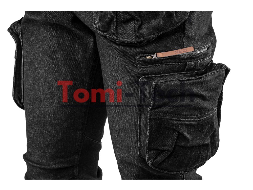 Pracovné nohavice DENIM s 5 vreckami, čierne, veľkosť XS, 98 % bavlna, 2 % elastan, s pridaným elastanom pre lepšie padnutie a väčšie pohodlie, multifunkčné a priestranné vrecká, panel v rozkroku a pod kolenom pre zvýšené pohodlie, profilované koleno, ďalšie vrecko v spodnej časti nohavice, kožené výplne s logom, vnútorná výplň s menom, jedinečný vlastný dizajn, certifikát CE, zhoda s normou EN ISO 13688:2013Dodatočné parametre