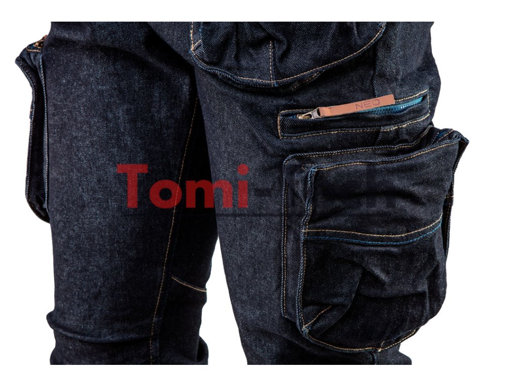 5-vreckové pracovné nohavice DENIM, pridaný elastan pre lepšie padnutie a väčšie pohodlie, multifunkčné a priestranné vrecká, panel v rozkroku a pod kolenom pre väčšie pohodlie, profilované koleno, ďalšie vrecko v spodnej časti nohavice, kožené výplne s logom, vnútorná výplň s menom, jedinečný vlastný dizajn, veľkosť XSDodatočné parametre