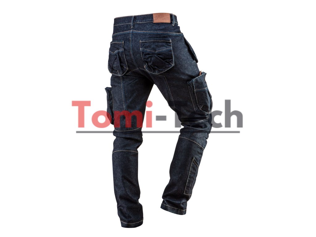 5-vreckové pracovné nohavice DENIM, pridaný elastan pre lepšie padnutie a väčšie pohodlie, multifunkčné a priestranné vrecká, panel v rozkroku a pod kolenom pre väčšie pohodlie, profilované koleno, ďalšie vrecko v spodnej časti nohavice, kožené výplne s logom, vnútorná výplň s menom, jedinečný vlastný dizajn, veľkosť XXLDodatočné parametre