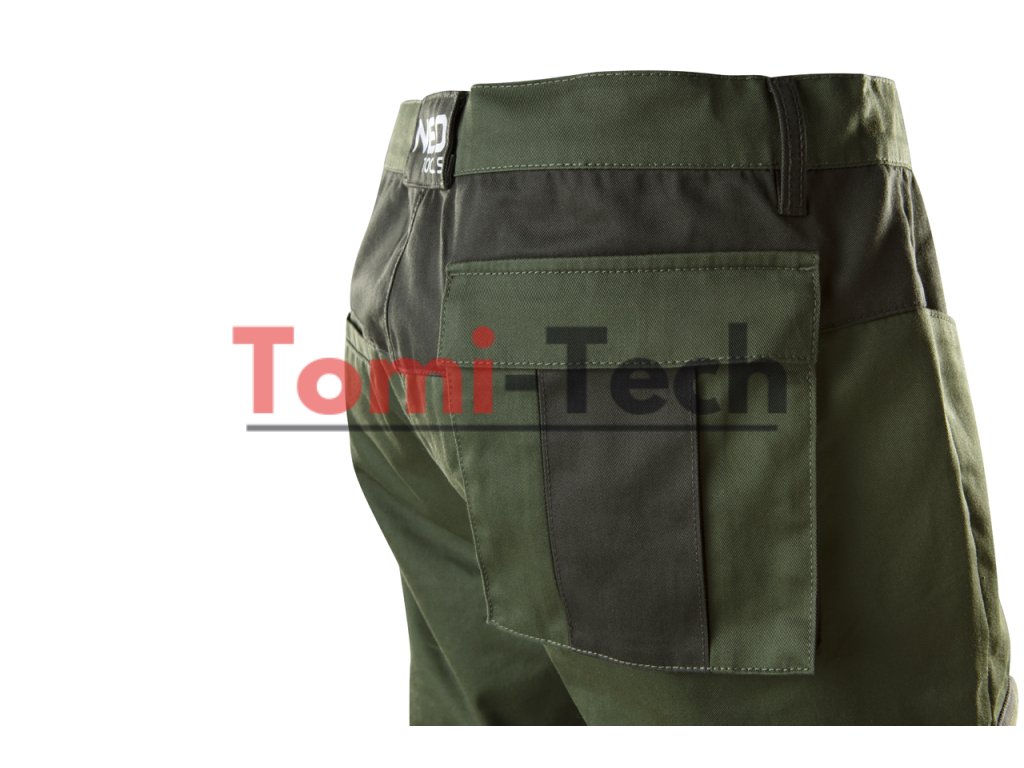 Pracovné nohavice CAMO olivovej farby, veľkosť XS, 60 % bavlna, 40 % polyester, 255 g/m2, multifunkčné vrecká, kolenný panel vystužený záševkami, predtvarované kolená, vnútorné nastavenie pásu, identifikačná vložka, olivová farba, certifikácia CEDodatočné parametre