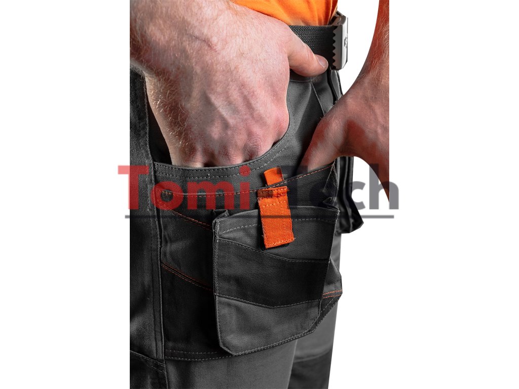 Pracovné nohavice, 100 % bavlna, gramáž 260 g/m2, vyrobené z keprovej bavlnenej tkaniny pre vysokú odolnosť a odolnosť proti roztrhnutiu, elastický pás, opasok súčasťou balenia, multifunkčné a priestranné vrecká, vrecká na chrániče kolien, vnútorná menovka, certifikát CE, veľkosť XXXLDodatočné parametre