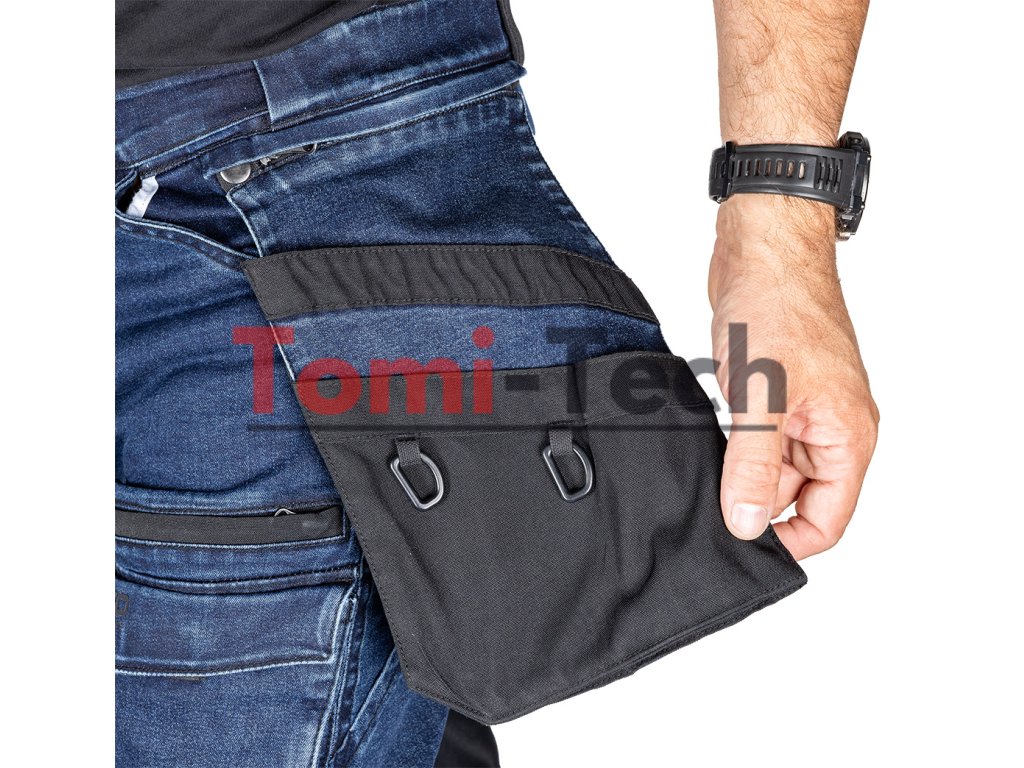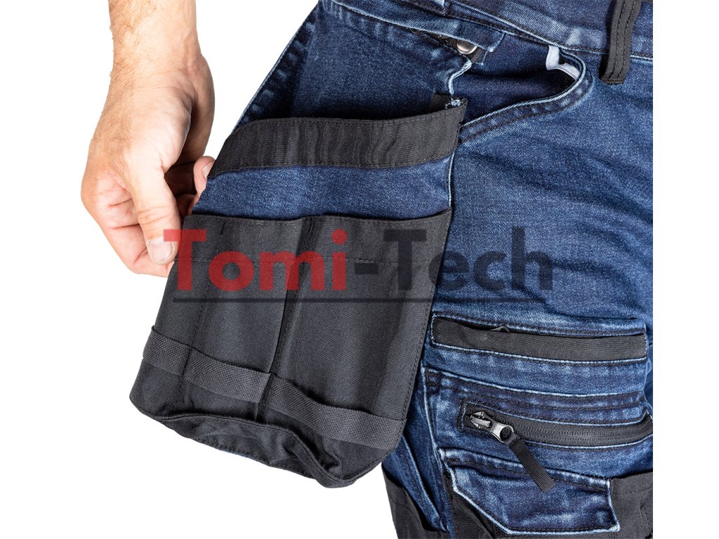 Pracovné nohavice DENIM, výstuhy z Cordury, odnímateľné vrecká na zbraň, tmavomodré, veľkosť L