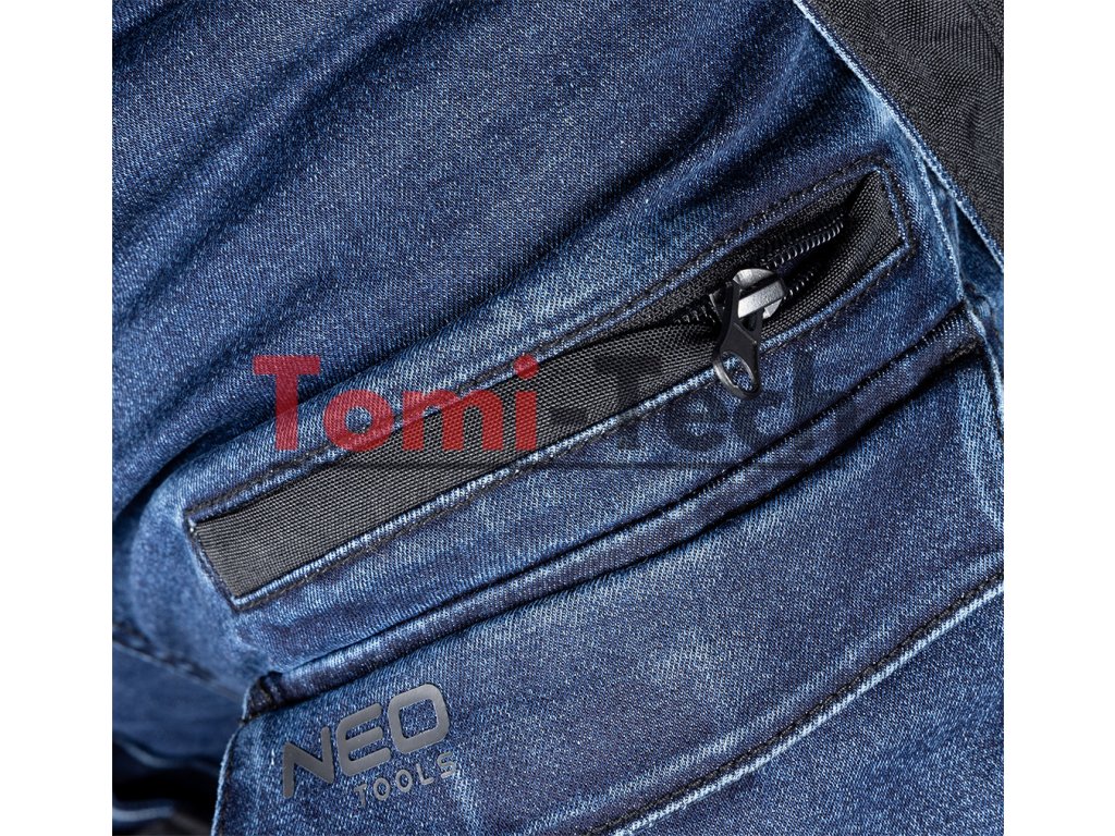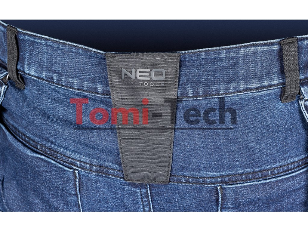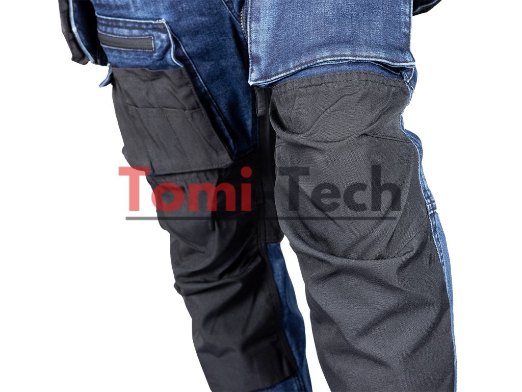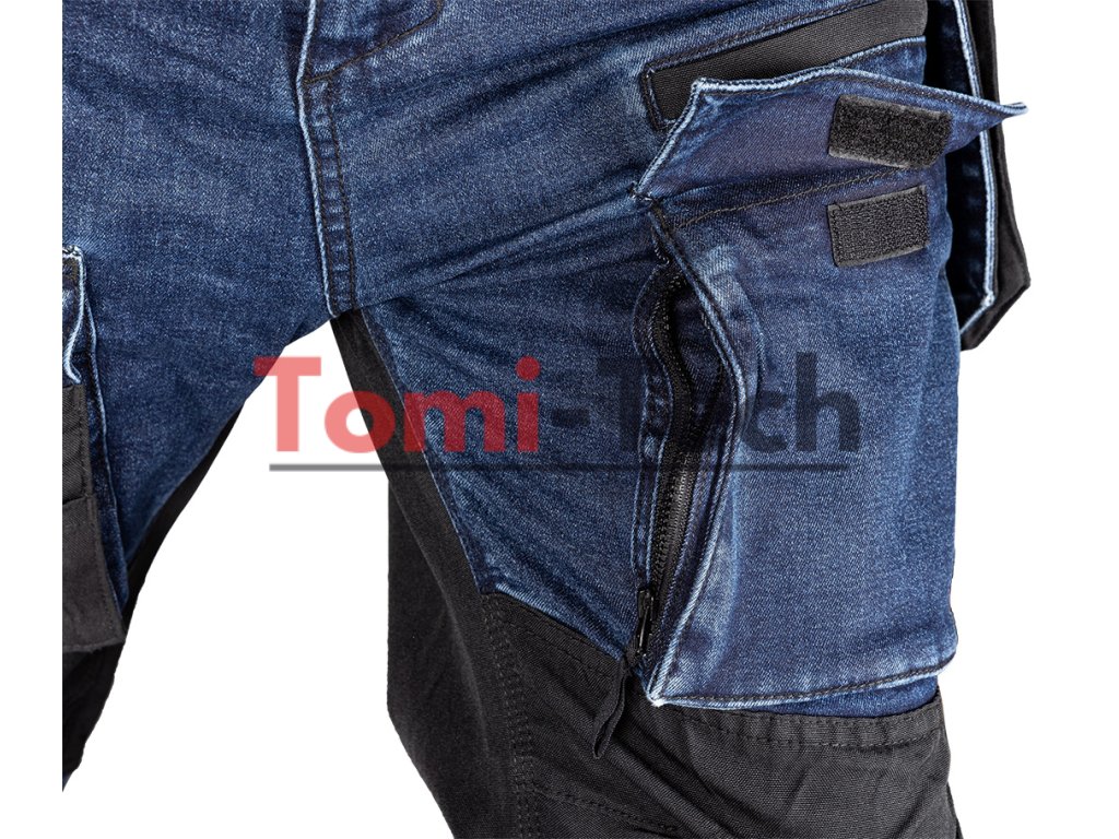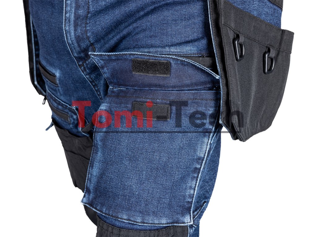 Pracovné nohavice DENIM, výstuhy z Cordury, odnímateľné vrecká na puzdrá, tmavomodré, veľkosť XS
