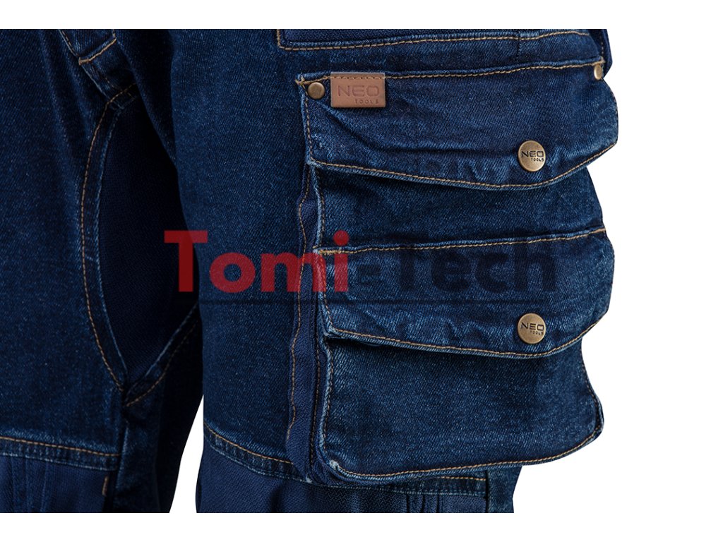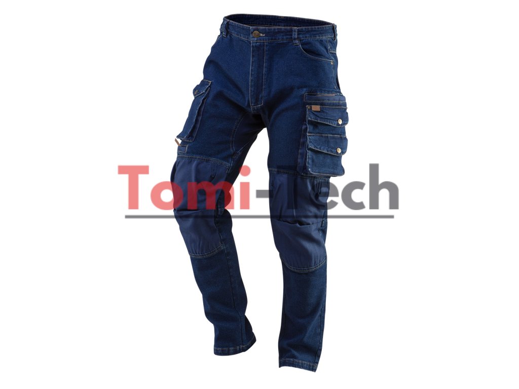 Pracovné nohavice DENIM, vystužené kolená, pridaný elastan pre lepšie padnutie a väčšie pohodlie, vrecko na kolenné chrániče vystužené bavlneným Oxfordom, multifunkčné a priestranné vrecká, vrecká vystužené bavlneným Oxfordom, panel z bavlneného Oxfordu v rozkroku, profilované kolená, kožené vsadky s logom, vnútorná vsadka s menom, jedinečný vlastný dizajn, veľkosť SDodatočné parametre