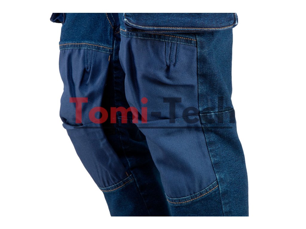 Pracovné nohavice DENIM, vystužené kolená, pridaný elastan pre lepšie padnutie a väčšie pohodlie, vrecko na kolenné chrániče vystužené bavlneným Oxfordom, multifunkčné a priestranné vrecká, vrecká vystužené bavlneným Oxfordom, panel z bavlneného Oxfordu v rozkroku, profilované kolená, kožené vsadky s logom, vnútorná vsadka s menom, jedinečný vlastný dizajn, veľkosť XXXLDodatočné parametre