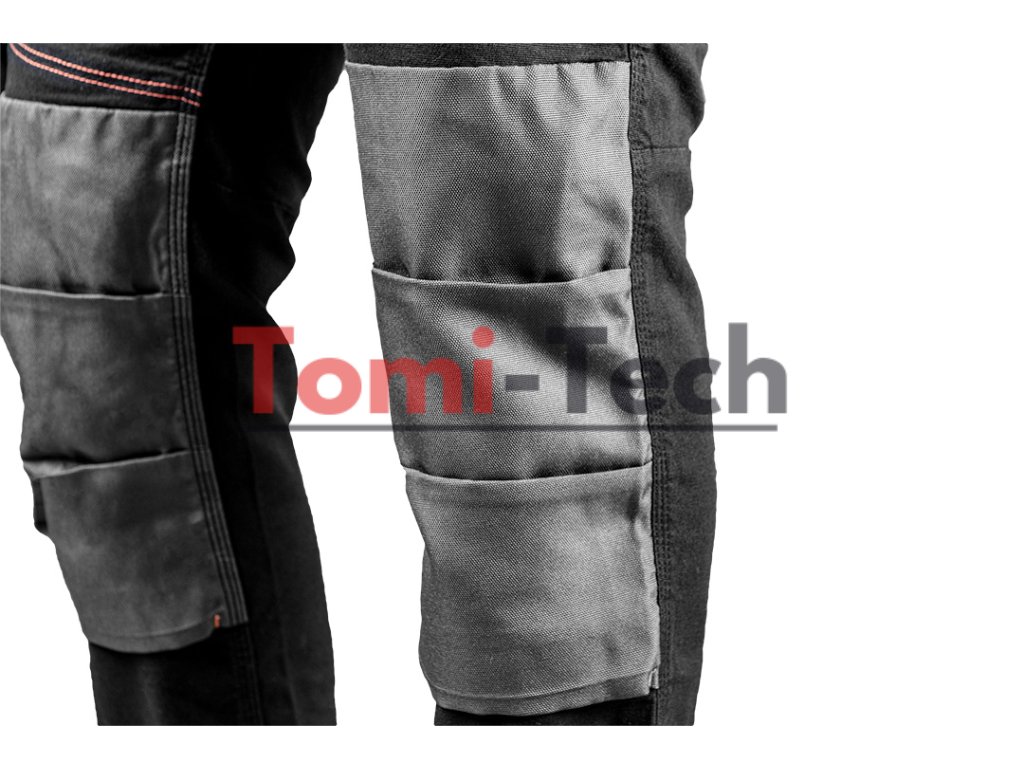 Pracovné nohavice HD Slim, opasok, zloženie materiálu 60% bavlna, 37% polyester, 3% elastan, gramáž 285 g/m2, pridanie elastanu zaisťuje lepšie padnutie a väčšie pohodlie pri nosení, unikátny strih Slim fit, priliehavý k telu, dodatočné výstuhy z oxfordskej látky v miestach najviac vystavených oderu, multifunkčné a priestranné vrecká, profilované koleno, vnútorná menovka, bavlnený opasok s kovovou prackou, reliéfne logo NEO Tools, vrecká na kolenách, trojité šitie, možnosť predĺženia nohavíc, reflexné prvky, certifikát CE, veľkosť XSDodatočné parametre