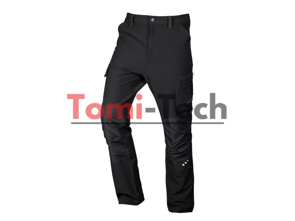 Pracovné nohavice Mix&Match vyrobené zo 4-cestnej strečovej tkaniny, materiálové zloženie 92% polyester 8% spandex, gramáž 230g/m2, čierna farba s oranžovými prvkami, dvojité šitie, vystužené kolená s priestorom pre chrániče kolien, vystužené dolné časti nohavíc, predtvarované kolená, reflexná potlač, pútko na náradie, menovka, certifikát CE EN ISO 13688:2013, veľkosť XLDodatočné parametre