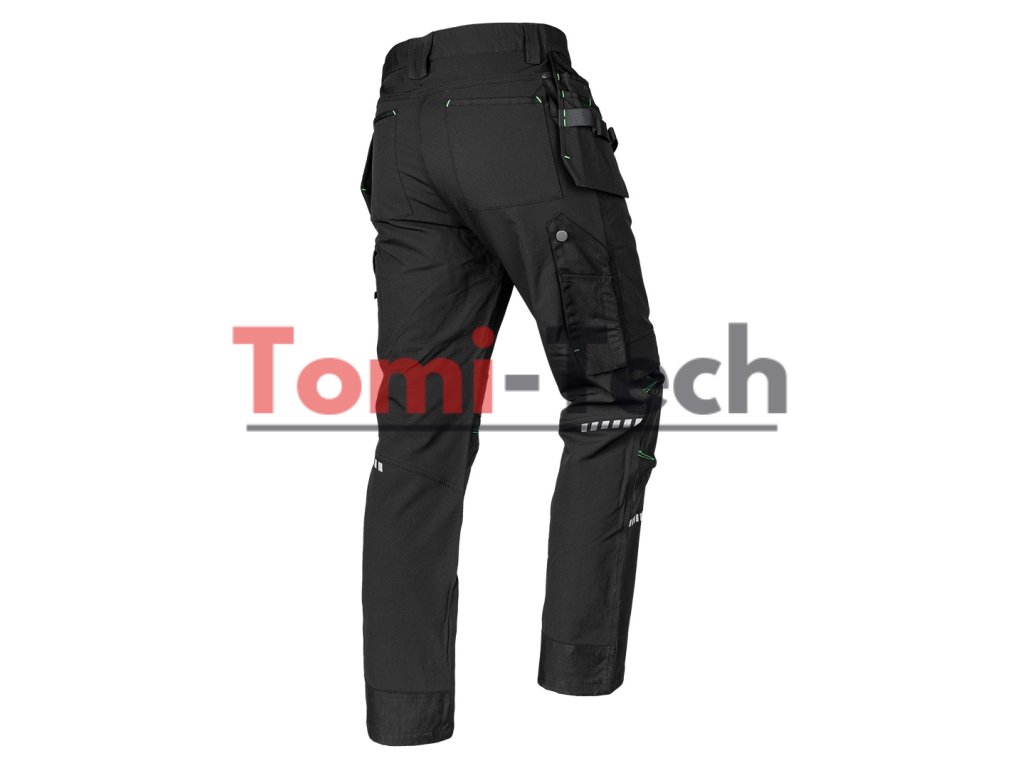 Pracovné nohavice Mix&Match vyrobené zo 4-cestnej strečovej látky s puzdrami na náradie a výstuhami z Cordury, materiálové zloženie 91% nylon 9% spandex, gramáž 230g/m2, čierna farba s neónovými vložkami, reflexné prvky na kolenách vpredu a vzadu, bočné vrecko s pútkami na náradie, bočné vrecká na zips, odnímateľné bočné vrecká na zips, výstuž z Cordury na vrecku na náradie, bočnom vrecku, kolenách a dolnej časti nohavíc, menovka, certifikát CE EN ISO 13688:2013, veľkosť XLDodatočné parametre