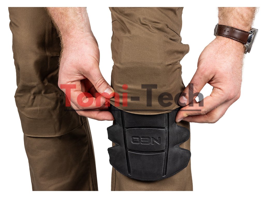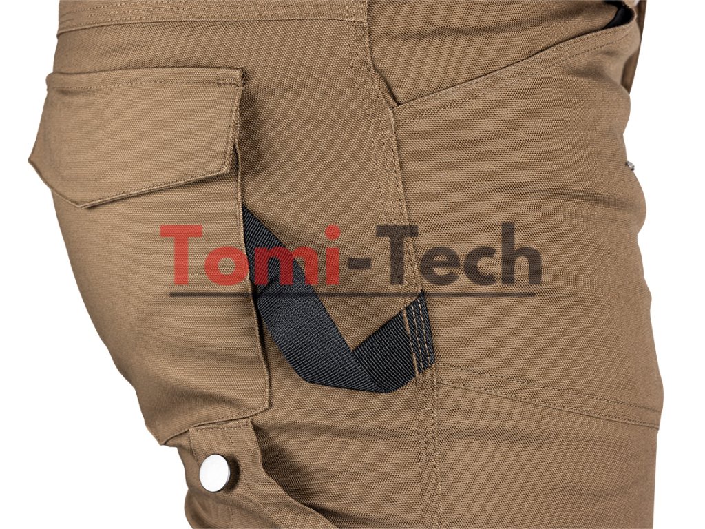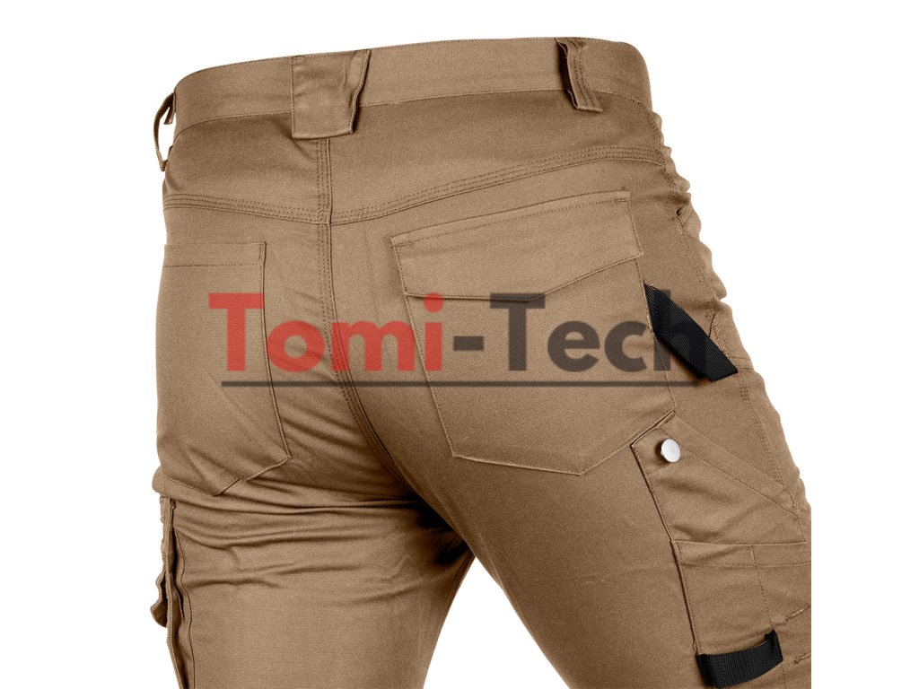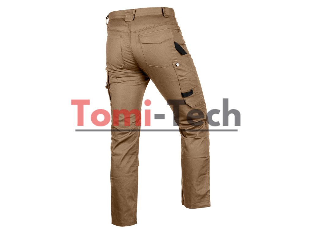 Pracovné nohavice Mix&Match, plátno, veľkosť L, materiálové zloženie 58 % bavlna 39 % polyester 3 % elastan, gramáž 280 g/m2, hnedé, tvarované kolená, vrecko na chrániče kolien, reflexný prvok na bočnom vrecku, vrecko na náradie na stehne so sponou v tvare gombíka, držiak na identifikačný odznak, pútko na náradie z pásky, trojité šitie, menovka, certifikát CE podľa EN ISO 13688:2013Dodatočné parametre