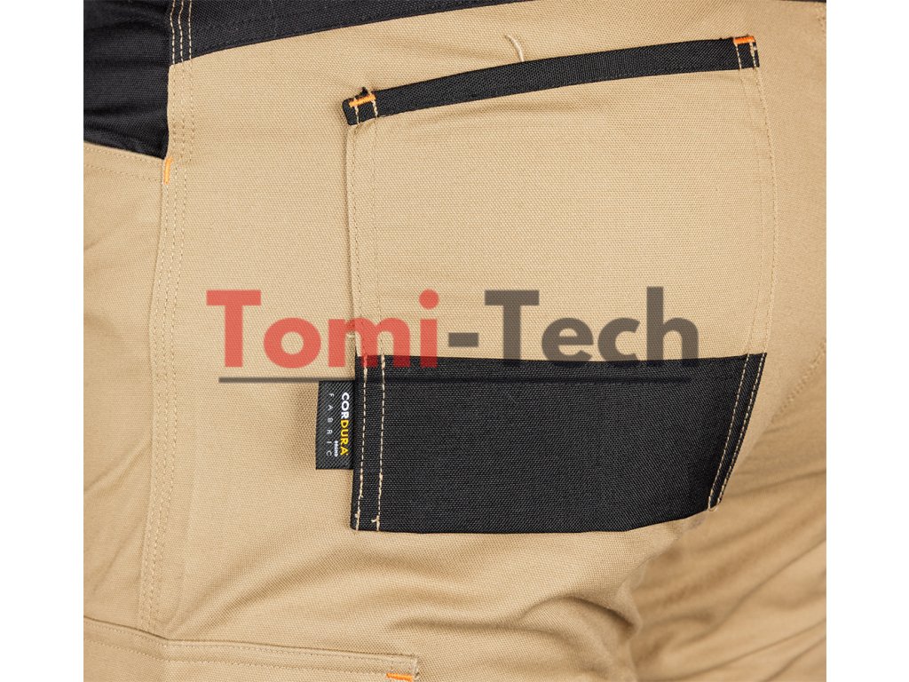 Pracovné nohavice Mix&Match, plátno s výstuhami z Cordury, veľkosť M, materiálové zloženie 64 % polyester, 34 % bavlna, 2 % elastan, gramáž 280 g/m2, béžovo-čierna farba, pútka na náradie, vrecká na chrániče kolien, výstuhy v spodnej časti nohavíc, reflexné vložky v spodnej časti nohavíc, tvarované kolená, trojité šitie, menovka, certifikát CE podľa EN ISO 13688:2013Dodatočné parametre