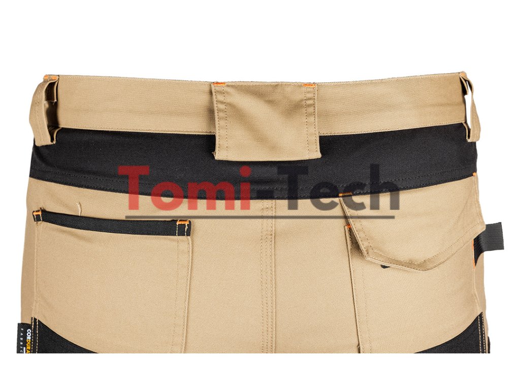Pracovné nohavice Mix&Match, plátno s výstuhami z Cordury, veľkosť S, materiálové zloženie 64 % polyester, 34 % bavlna, 2 % elastan, gramáž 280 g/m2, béžovo-čierna farba, pútka na náradie, vrecká na chrániče kolien, výstuhy v spodnej časti nohavíc, reflexné vložky v spodnej časti nohavíc, tvarované kolená, trojité šitie, menovka, certifikát CE podľa EN ISO 13688:2013Dodatočné parametre
