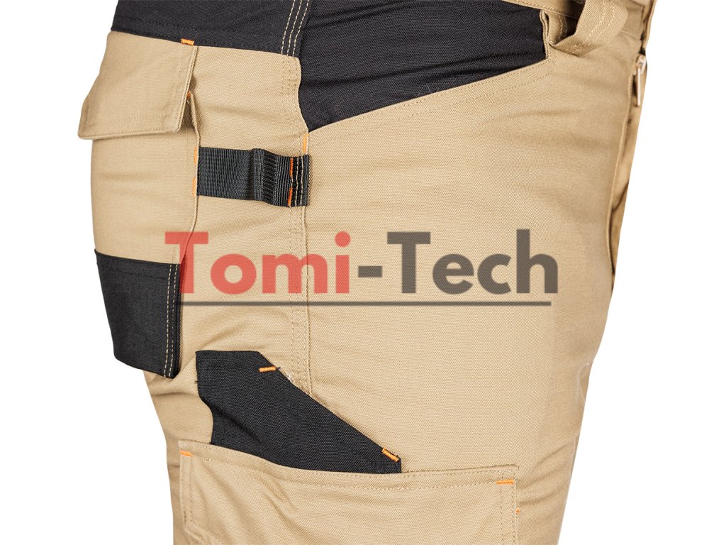 Pracovné nohavice Mix&Match, plátno s výstuhami z Cordury, veľkosť XS, materiálové zloženie 64 % polyester, 34 % bavlna, 2 % elastan, gramáž 280 g/m2, béžová a čierna, pútka na náradie, vrecká na chrániče kolien, výstuhy v spodnej časti nohavíc, reflexné vložky v spodnej časti nohavíc, tvarované kolená, trojité šitie, menovka, certifikát CE podľa EN ISO 13688:2013Dodatočné parametre