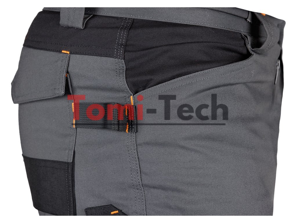 Pracovné nohavice Mix&Match, plátno s výstuhami z Cordury, veľkosť L, materiálové zloženie 64 % polyester, 34 % bavlna, 2 % elastan, gramáž 280 g/m2, šedo-čierna kombinácia, pútka na náradie, vrecká na chrániče kolien, výstuhy v spodnej časti nohavíc, reflexné vložky v spodnej časti nohavíc, tvarované kolená, trojité šitie, menovka, certifikát CE podľa EN ISO 13688:2013Dodatočné parametre