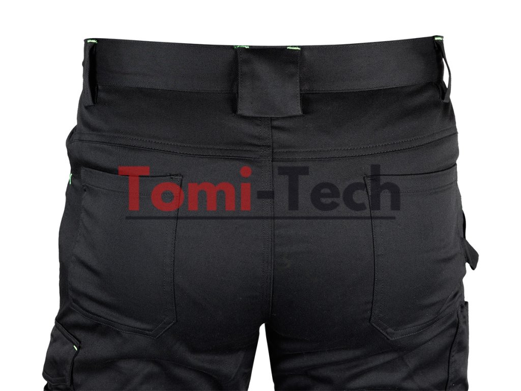 Pracovné nohavice Mix&Match, čierne, veľkosť XL, zloženie materiálu: 58 % bavlna, 40 % polyester, 2 % elastan, gramáž: 240 g/m2, trojité šitie, vrecko na chrániče kolien, pútka na náradie, reflexná potlač nad kolenom, multifunkčné vrecká, tvarované kolená, identifikačná vložka, certifikát CE podľa EN ISO 13688:2013Dodatočné parametre