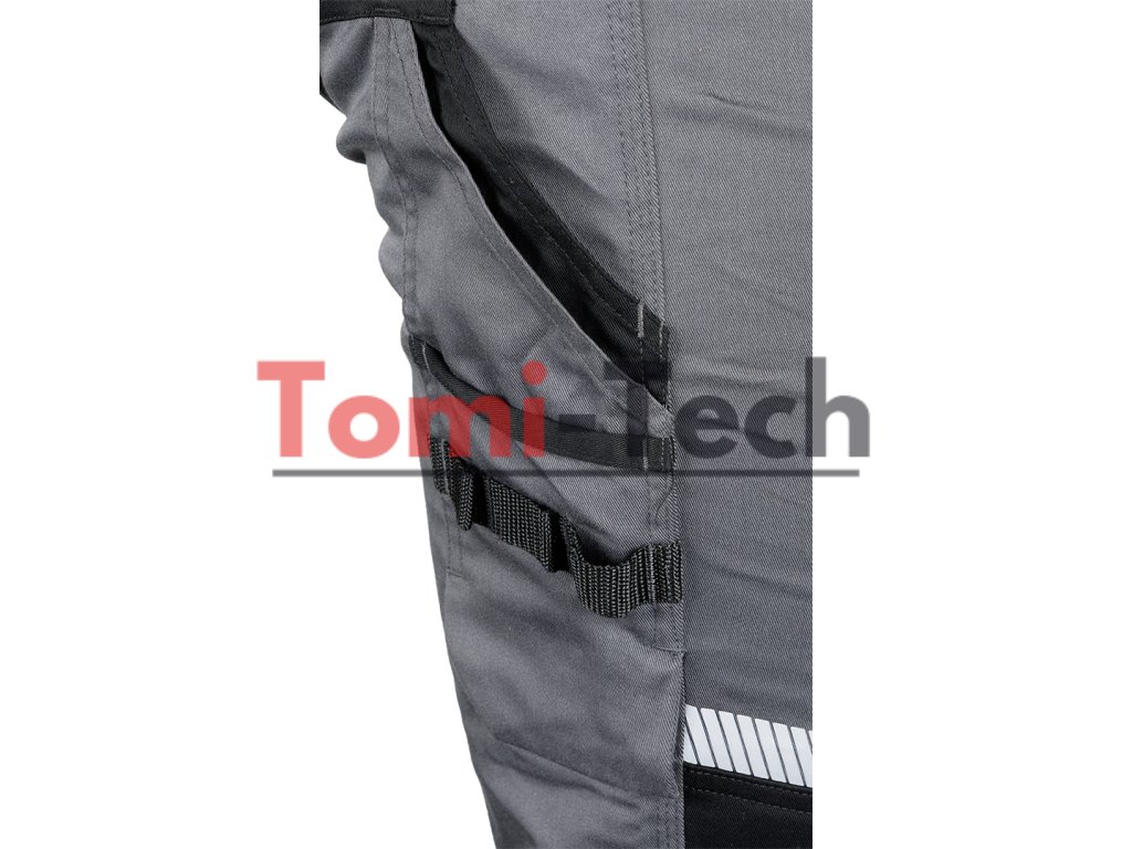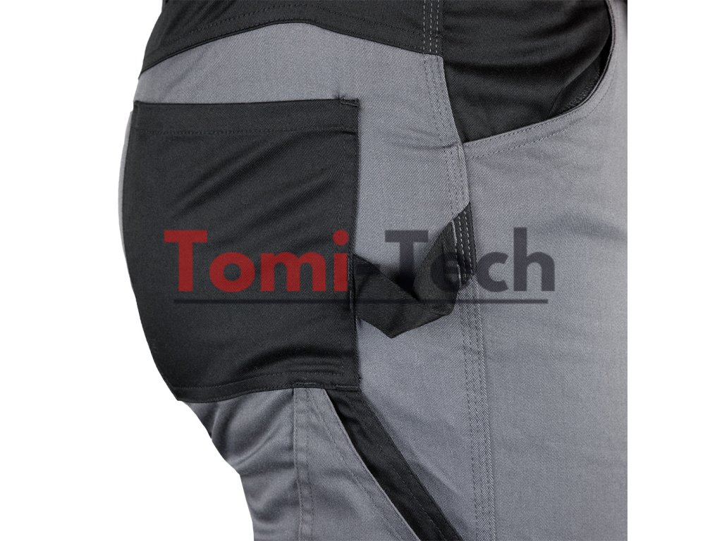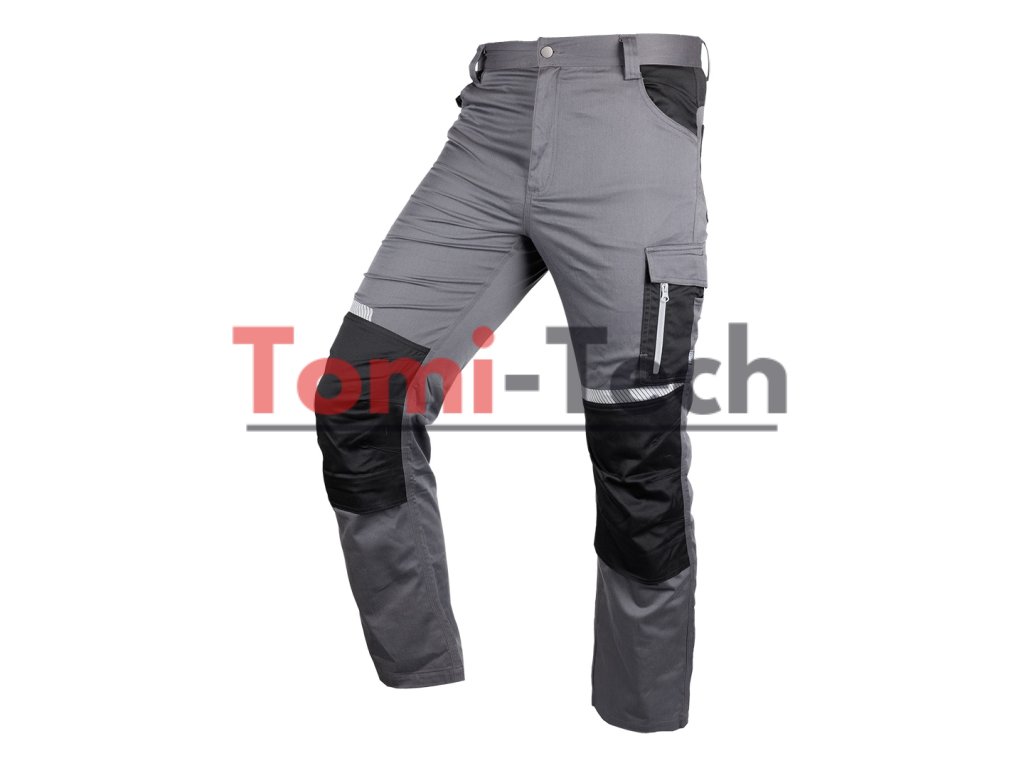 Pracovné nohavice Mix&Match, sivé a čierne, veľkosť M, zloženie materiálu: 58 % bavlna, 40 % polyester, 2 % elastan, gramáž: 240 g/m2, trojité šitie, vrecko na chrániče kolien, pútka na náradie, reflexná potlač nad kolenom, multifunkčné vrecká, tvarované kolená, identifikačná vložka, certifikát CE podľa EN ISO 13688:2013Dodatočné parametre
