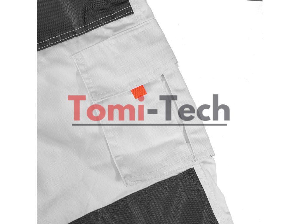 Pracovné nohavice s náprsníkom, biele, veľkosť S/48, 35 % bavlna, 65 % polyester, 267 g/m2, výstuhy z oxfordskej tkaniny, vystužené vrecká, reflexný prvok na chrbte, trojité šitie, možnosť vložiť chrániče kolien, CE, EN ISO 13688:2013Dodatočné parametre