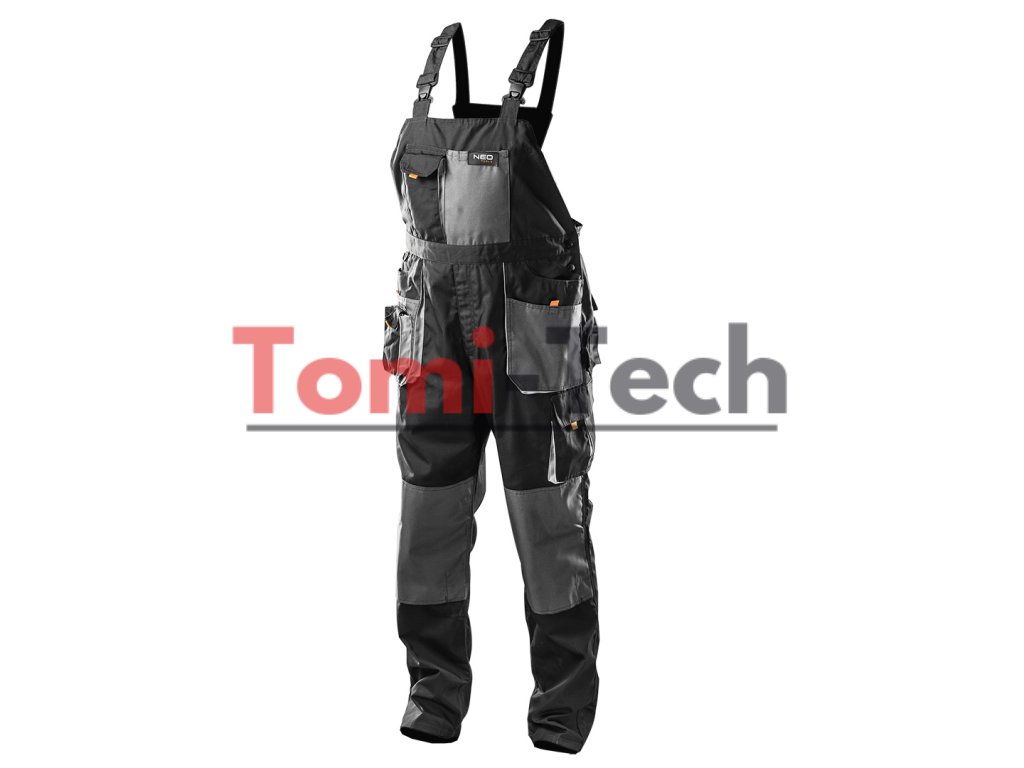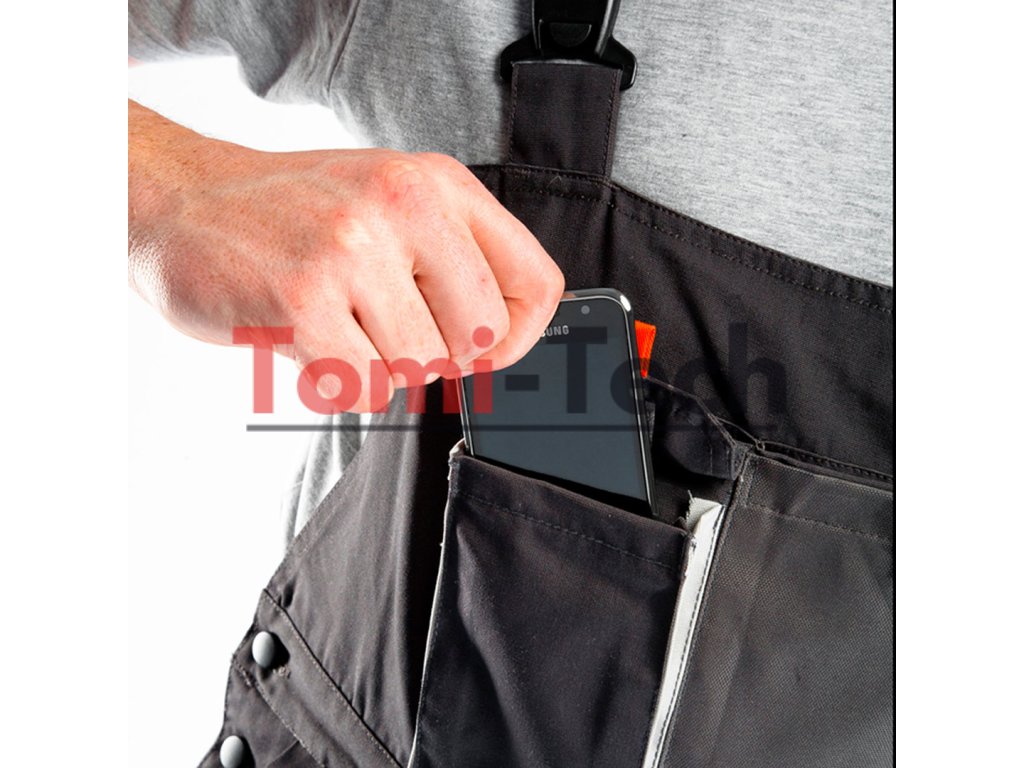 Pracovné nohavice s náprsníkom, veľkosť L/54, 35 % bavlna, 65 % polyester, 267 g/m2, výstuhy z oxfordskej tkaniny, vystužené vrecká, reflexný prvok na chrbte, trojité šitie, možnosť vloženia chráničov kolien, CE, EN ISO 13688:2013Dodatočné parametre