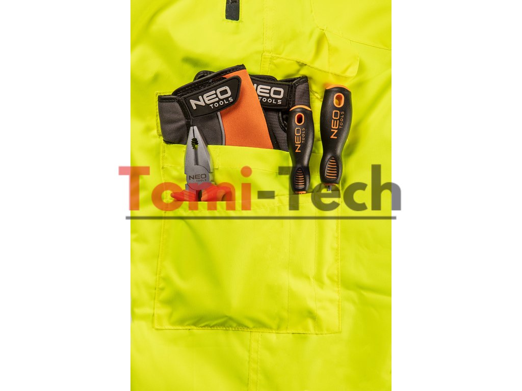 Pracovné nohavice s vysokou viditeľnosťou, žlté, veľkosť L, vysoká viditeľnosť, trieda 1 podľa EN ISO 20471, tkanina Oxford 300D, polyesterová podšívka, viacero multifunkčných vreciek, držiak na náradie, elastický pás, podlepené švy, vodeodolné a vetruodolné, CE, EN ISO 13688:2013Dodatočné parametre