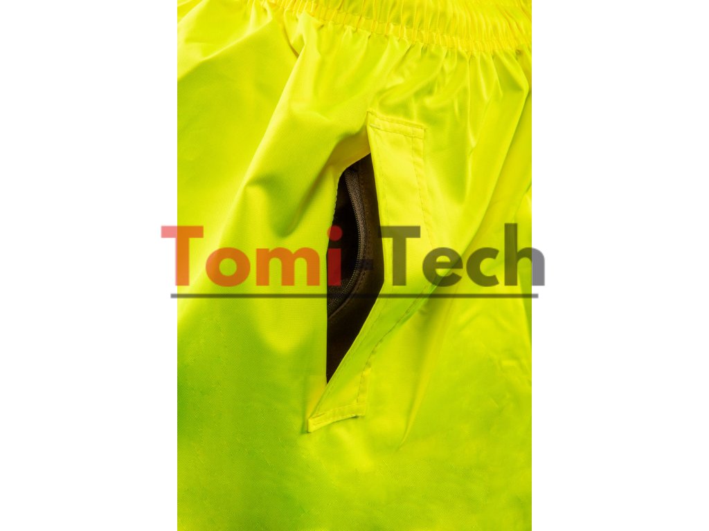 Nepremokavé, žlté, vysoko reflexné pracovné nohavice, veľkosť M, trieda 1 podľa EN ISO 20471, tkanina 300D Oxford, priechodné vrecká, elastický pás, podlepené švy, vodeodolné a vetruodolné, CE, EN ISO 13688:2013Dodatočné parametre