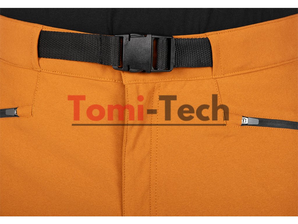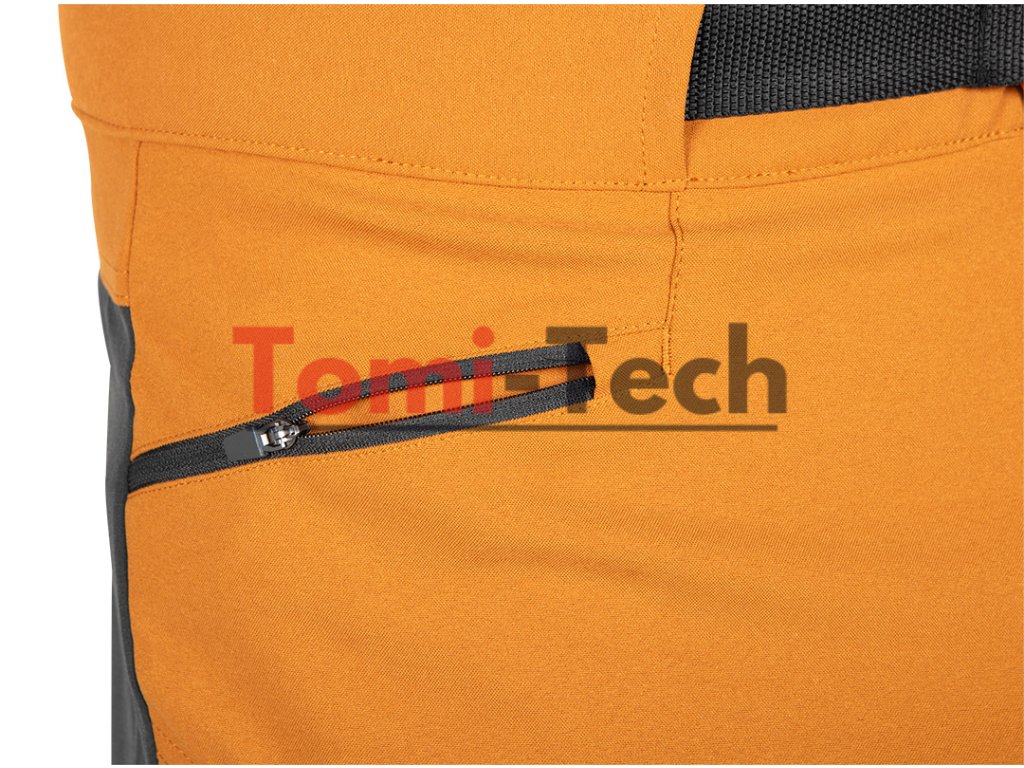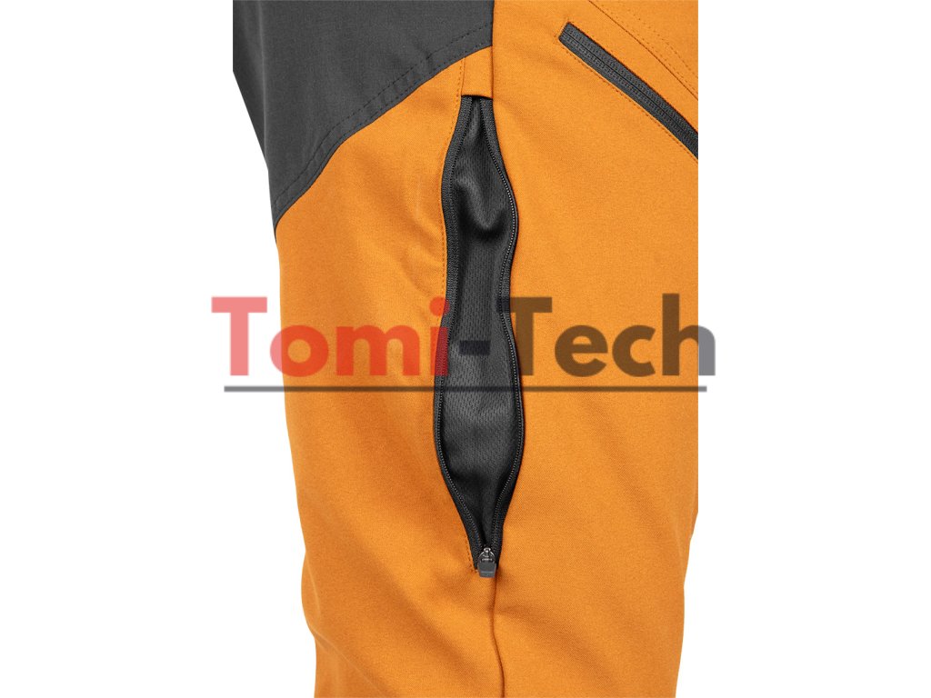 Pracovné nohavice OUTDOOR vyrobené zo 4-cestnej strečovej keprovej tkaniny, zloženie materiálu: 100 % rýchloschnúci polyester, gramáž: 210 g/m2, v horčicovej farbe s tmavosivými výložkami na zadnej strane stehien a kolená, predné vrecká na zips, vetranie v bočnom šve, tvarované kolená, nastaviteľný obvod nohavíc pomocou suchého zipsu a zipsu, menovka, štítok s logom nad kolenom, veľkosť LDodatočné parametre