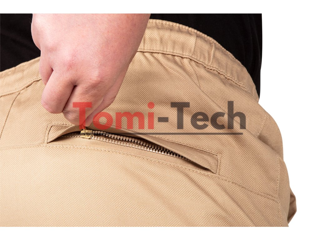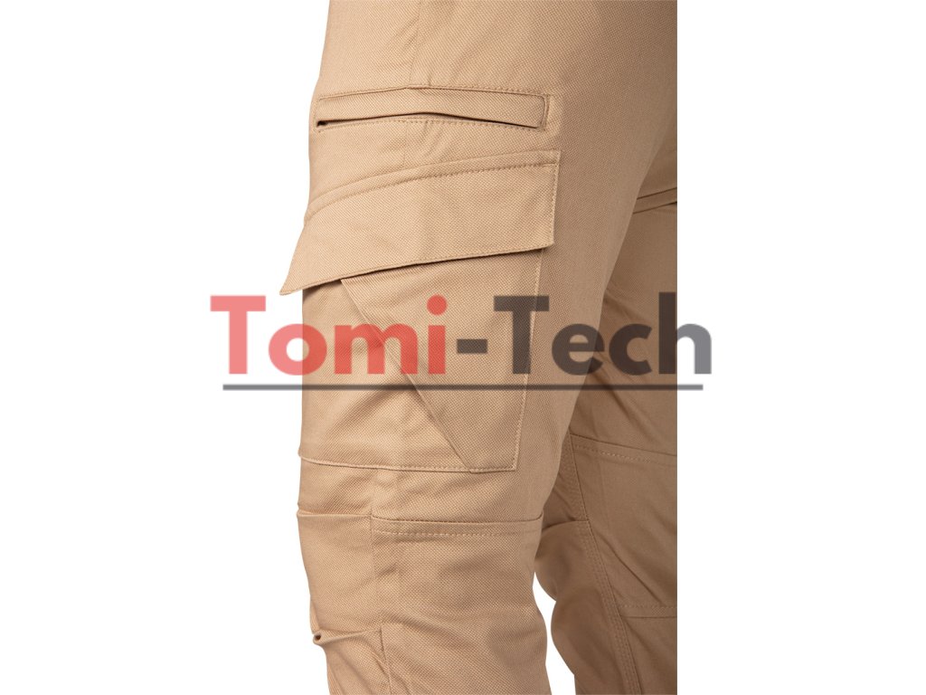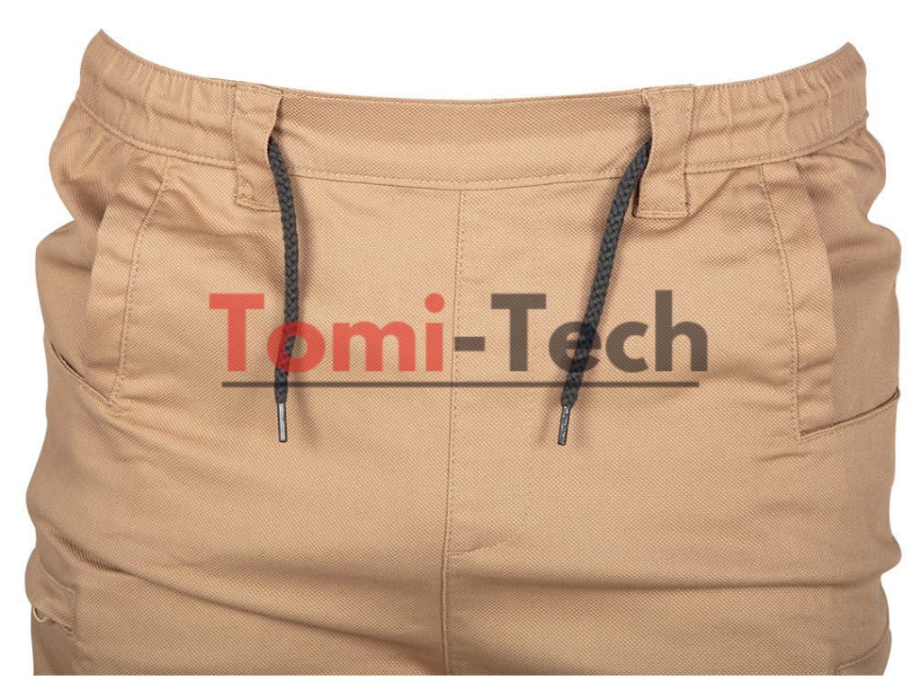 Pracovné nohavice OUTDOOR, typ "jogger", béžové, materiálové zloženie: 80% bavlna, 17% polyester, 3% spandex, gramáž: 280 g/m2, materiál s dobby väzbou, elastický pás, bez zapínania vpredu, dodatočná šnúrka v páse, bočné vrecká so šnúrkou, ďalšie vrecká na stehnách so zipsom, priestranné vrecká nad kolenom, profilované koleno vpredu a vzadu, manžeta s gumou na vonkajšej strane v spodnej časti nohavice, sedlo a dve vrecká so zipsom vzadu, potlačené logo na chlopni vrecka nad kolenom, balenie: recyklované plastové vrecko, menovka, jedinečný vlastný dizajn, certifikát CE, veľkosť LDodatočné parametre