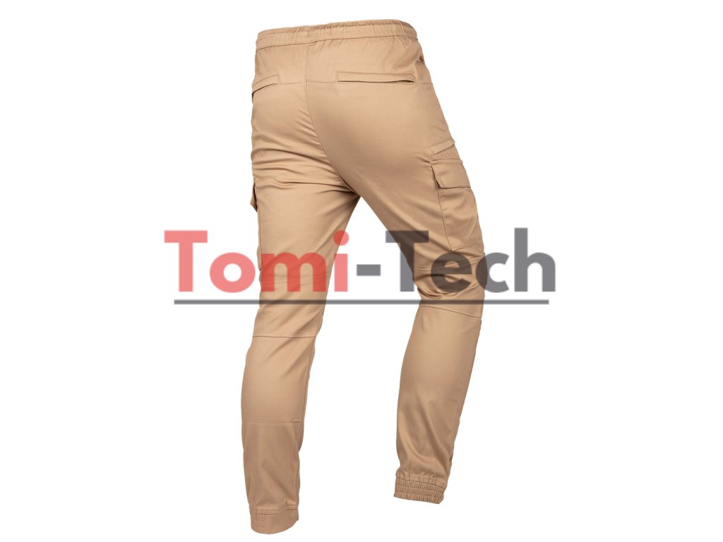 Pracovné nohavice OUTDOOR, typ "jogger", béžové, materiálové zloženie: 80% bavlna, 17% polyester, 3% spandex, gramáž: 280 g/m2, materiál s dobby väzbou, elastický pás, bez zapínania vpredu, dodatočná šnúrka v páse, bočné vrecká so šnúrkou, ďalšie vrecká na stehnách so zipsom, priestranné vrecká nad kolenom, profilované koleno vpredu a vzadu, manžeta s gumou na vonkajšej strane v spodnej časti nohavice, sedlo a dve vrecká so zipsom na zadnej strane, potlačené logo na chlopni vrecka nad kolenom, balenie: recyklované plastové vrecko, menovka, jedinečný vlastný dizajn, certifikát CE, veľkosť XXXLDodatočné parametre