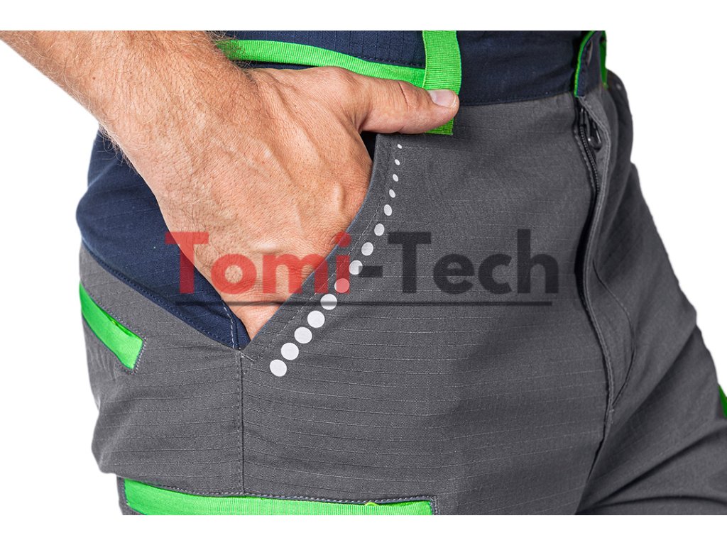 Pracovné nohavice PREMIUM, 100 % bavlna, ripstopová tkanina, gramáž 210 g/m2, výstuhy z Cordury, možno kombinovať s mikinou 81-217 a vytvoriť tak oblek, odnímateľné bočné vrecko, multifunkčné vrecká, výstuhy z Cordury na kolenách, nastaviteľný obvod pásu s vnútorným nastavením, reflexné potlače na nohaviciach a vreckách, vnútorná menovka, jedinečný vlastný dizajn, certifikát CE, veľkosť XSDodatočné parametre