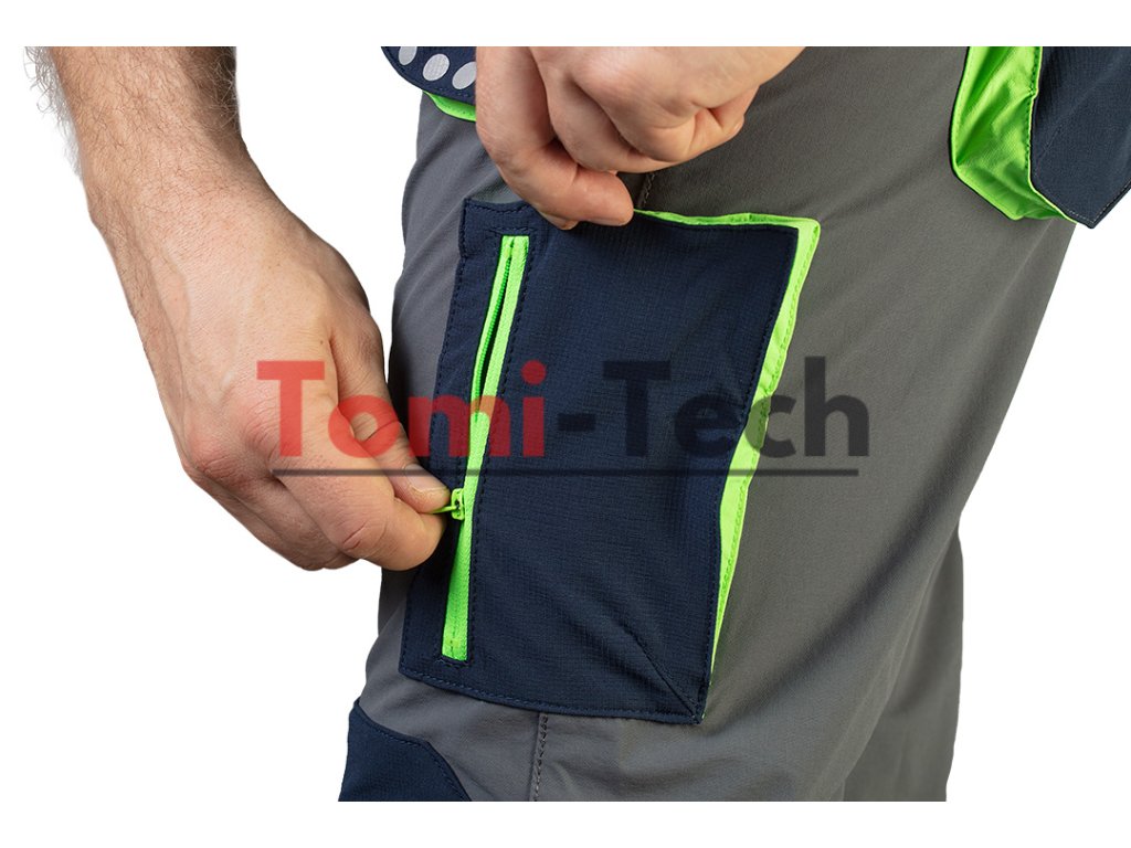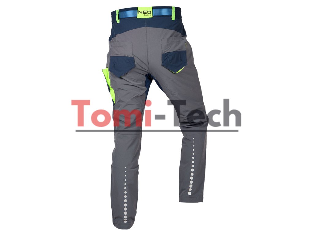 Pracovné nohavice PREMIUM, strečové v 4 smeroch, zloženie: 90 % polyamid, 10 % elastan, gramáž: 170 g/m2, vyrobené zo strečovej tkaniny v 4 smeroch, ktorá funguje v štyroch smeroch, pre väčšie pohodlie a komfort, jedinečný vlastný dizajn, dodatočné výstuhy na kolenách a vreckách, multifunkčné a priestranné vrecká, profilované kolená, vnútorná menovka, nylonový opasok s plastovou prackou s vyrazeným logom, reflexné zóny, veľkosť XL, certifikácia CEDodatočné parametre