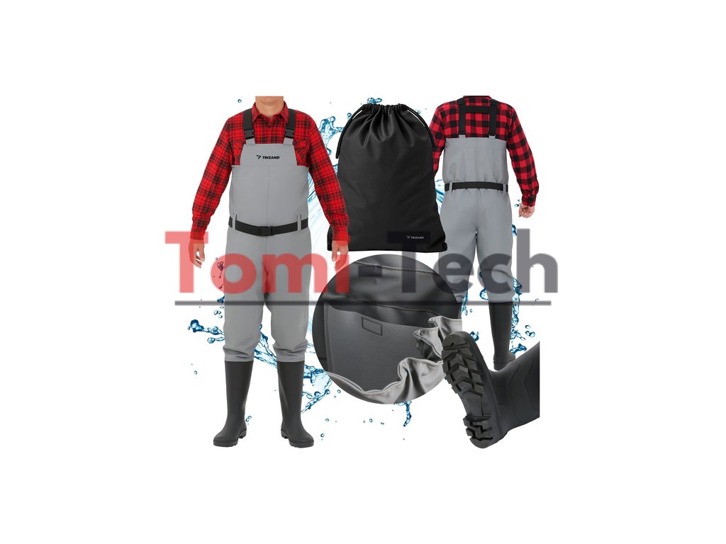 Rybárske brodiace nohavice TRIZAND, hrubé a dlhé gumené nohavice + nastaviteľné traky, veľkosť 44!