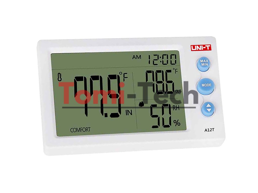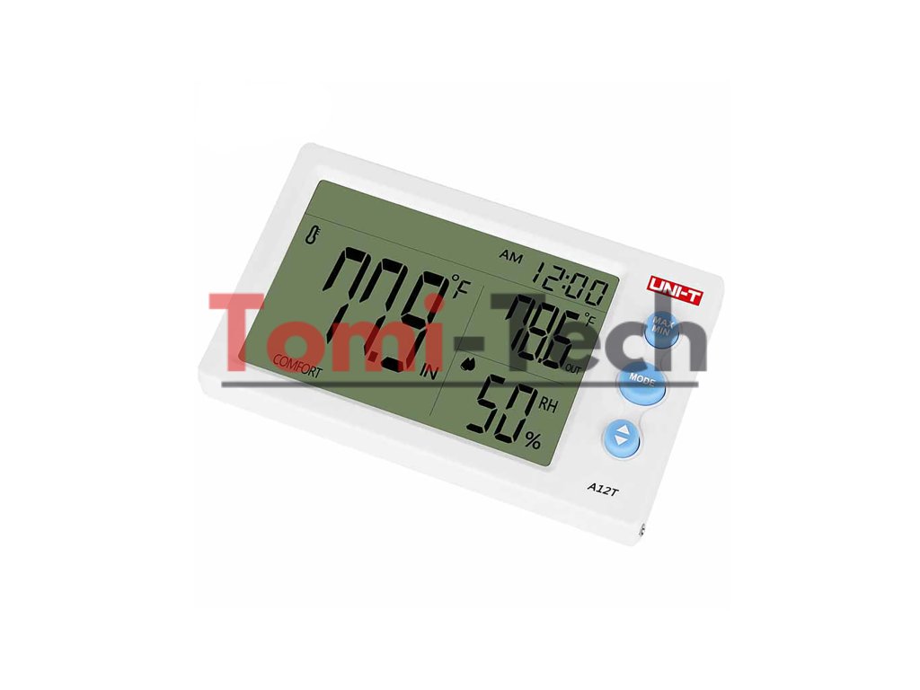 Meteorologická stanica Uni-T A12T je všestranné zariadenie na monitorovanie teploty a vlhkosti, ktoré ponúka presné merania a ďalšie funkcie. Táto meteorologická stanica je ideálna na použitie doma alebo v kancelárii a kombinuje presnosť s jednoduchým používaním.