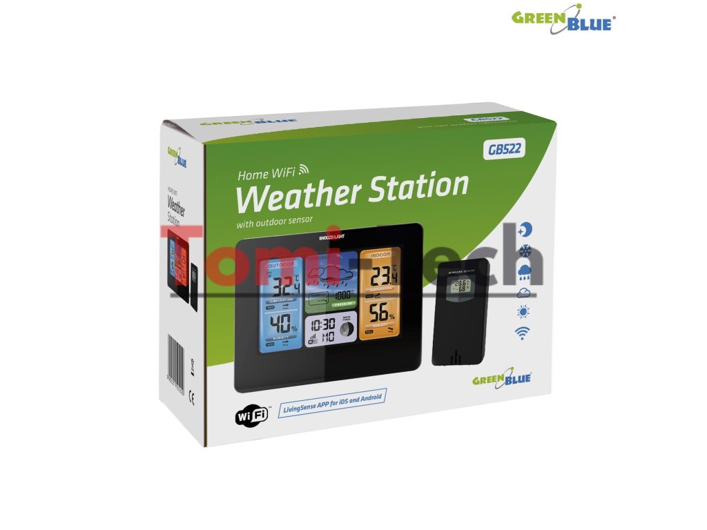 Bezdrôtová meteorologická stanica GreenBlue, farebná, WiFi, fázy mesiaca, GB522
