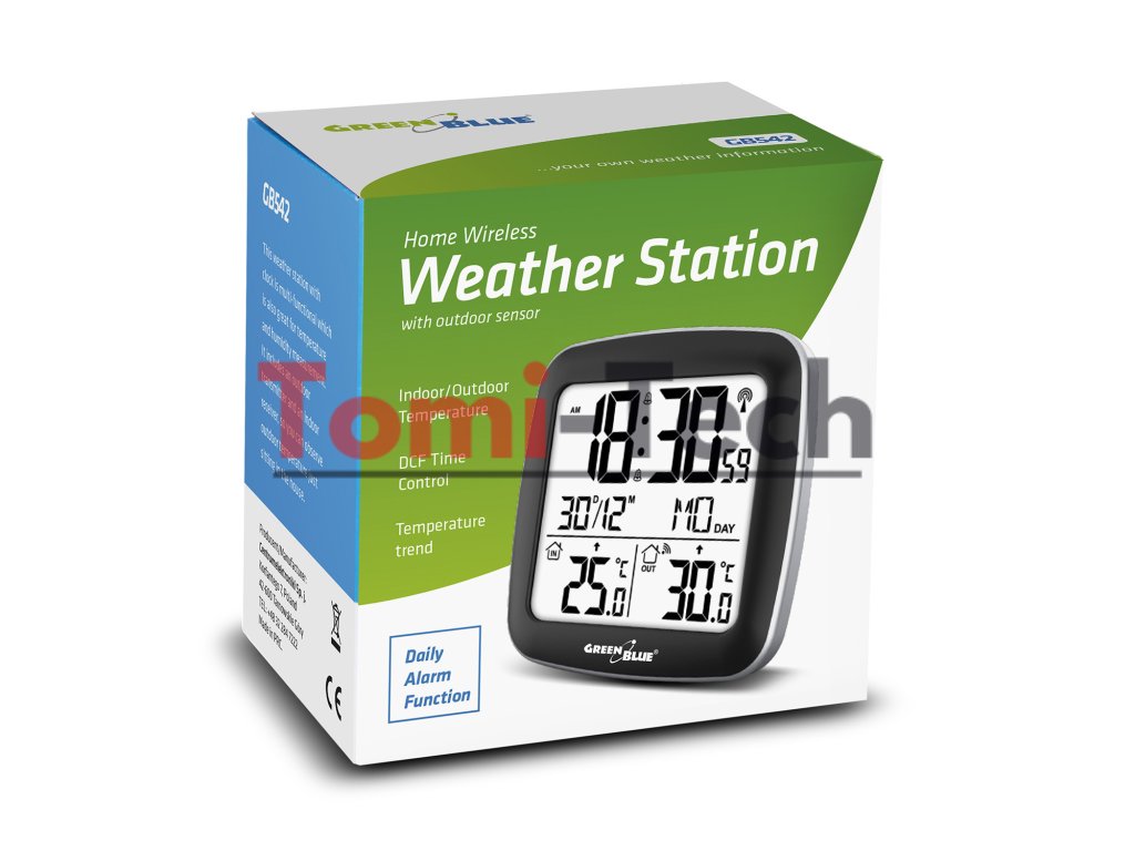 Bezdrôtová meteorologická stanica GreenBlue s DCF, kalendárom a budíkom, GB542