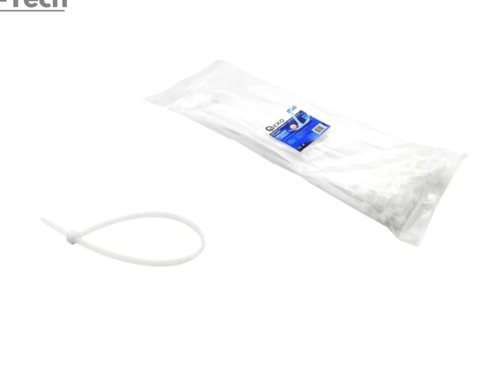Plastové sťahovacie pásky z polyamidu sú dlhé 200mm a široké 4,8mm v bielej farbe.