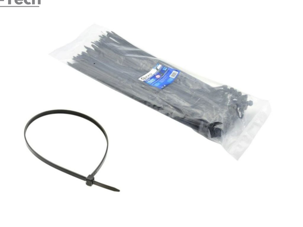 Plastové sťahovacie pásky z polyamidu sú dlhé 400mm a široké 7,6mm v čiernej farbe.