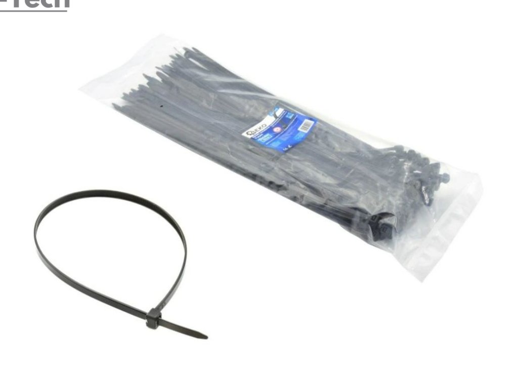 Plastové sťahovacie pásky z polyamidu sú dlhé 430mm a široké 7,6mm v čiernej farbe.