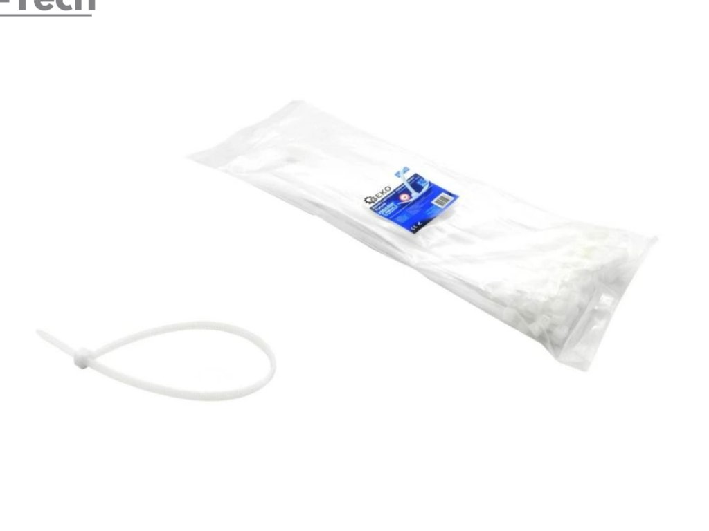 Plastové sťahovacie pásky z polyamidu sú dlhé 80mm a široké 2,5mm v bielej farbe.