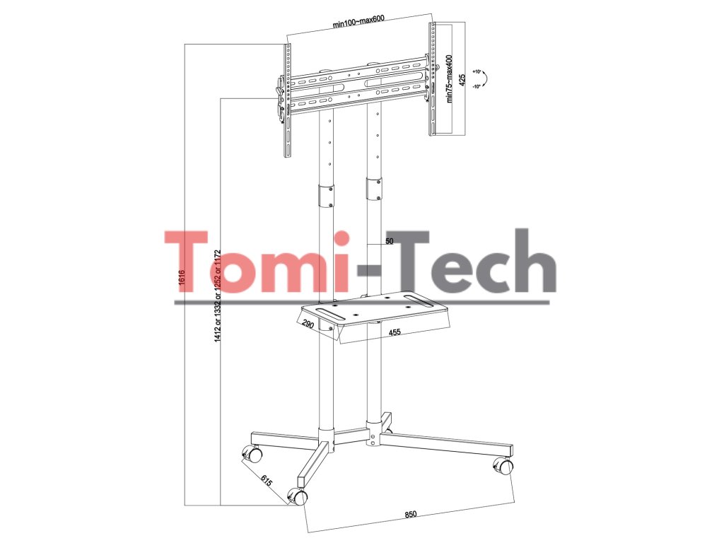 TV stojan MC-951 je perfektným riešením pre tých, ktorí chcú mobilitu a flexibilitu pri umiestnení svojho televízora na rôznych miestach. Integrovaný držiak je vhodný pre televízory s uhlopriečkou od 32 do 70 palcov s maximálnym rozstupom montážnych skrutiek (VESA) 600 mm x 400 mm.