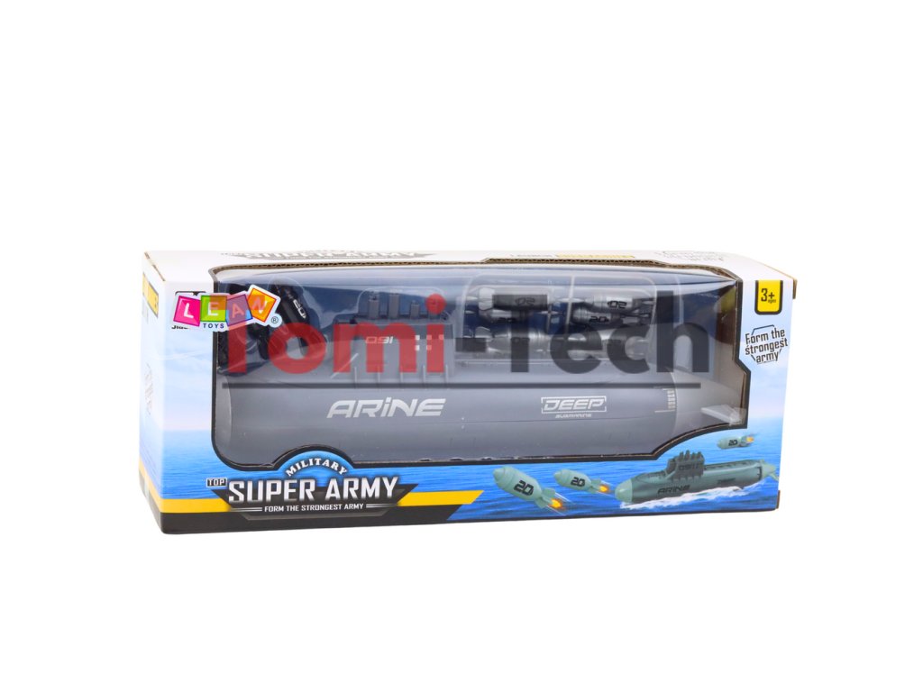 Táto realistická 28 cm dlhá ponorka je perfektnou hračkou pre malých fanúšikov vojenských a námorných dobrodružstiev. Vďaka treciemu pohonu (mechanickému napätiu) sa loďka môže pohybovať na hladine a funkcia odpaľovania torpéd dodáva vzrušenie a robí každú hru atraktívnejšou.
