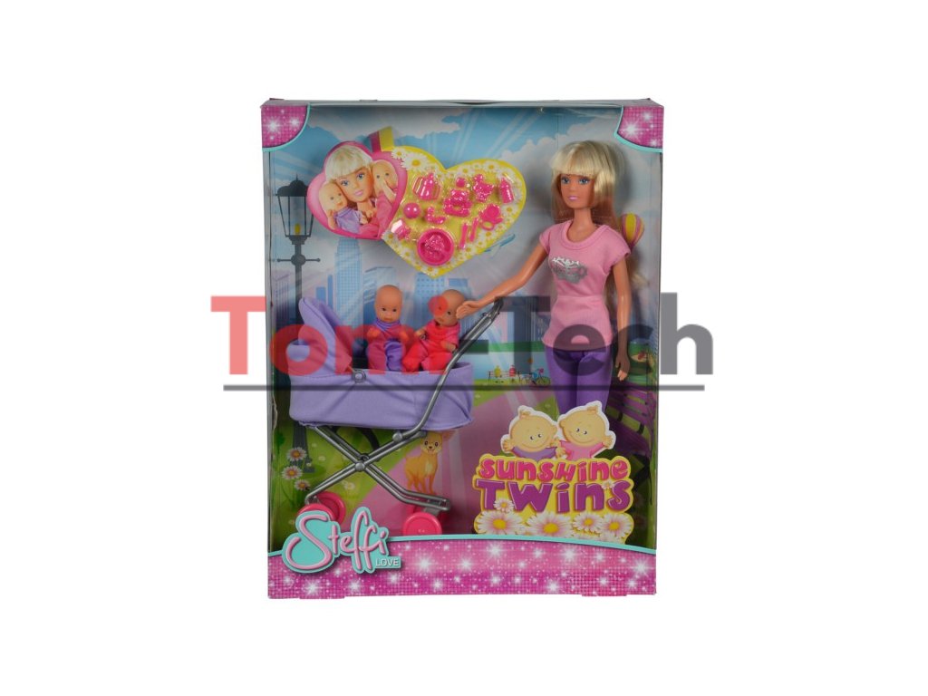 Steffi s dvoma deťmi v kočíku, s príslušenstvom, 10 dielov.