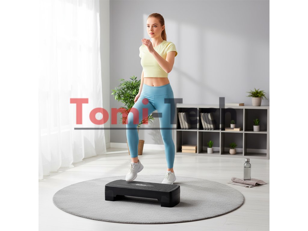 Step na aerobik a fitness cvičenia, 3 úrovne, 68 cm, čierny, REBEL ACTIVE
