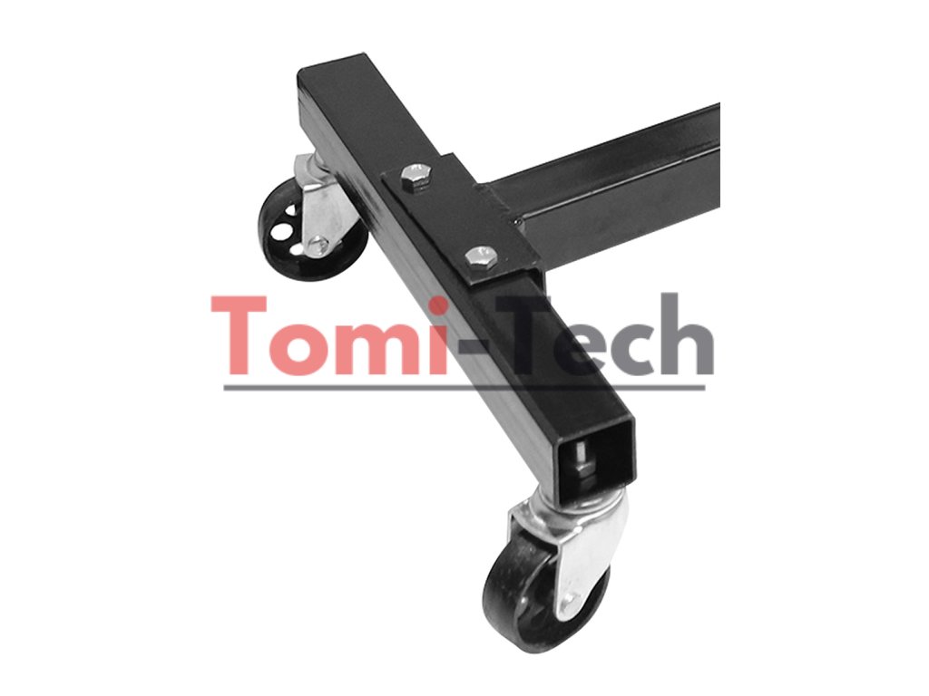 Stojan motora, nosnosť 450 kg, držiak motora otočný o 360°, rozmery základne: D 810 mm, Š 1 400 mm, Š 2 780 mm, V 820 mm. Otočné kolesá s guľôčkovými ložiskami vpredu a pevné kolesá vzadu.Dodatočné parametre