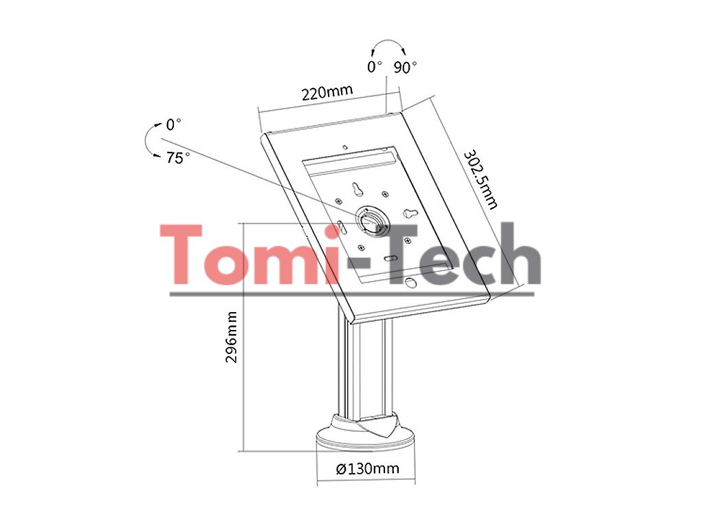 Náš stojan na tablet sa vyznačuje vysoko kvalitným spracovaním a pevnou oceľovou základňou s montážnymi otvormi, ktoré zaisťujú maximálnu bezpečnosť zariadenia umiestneného vo vnútri. Predložené puzdro bolo vhodne prispôsobené na montáž na vodorovné povrchy.