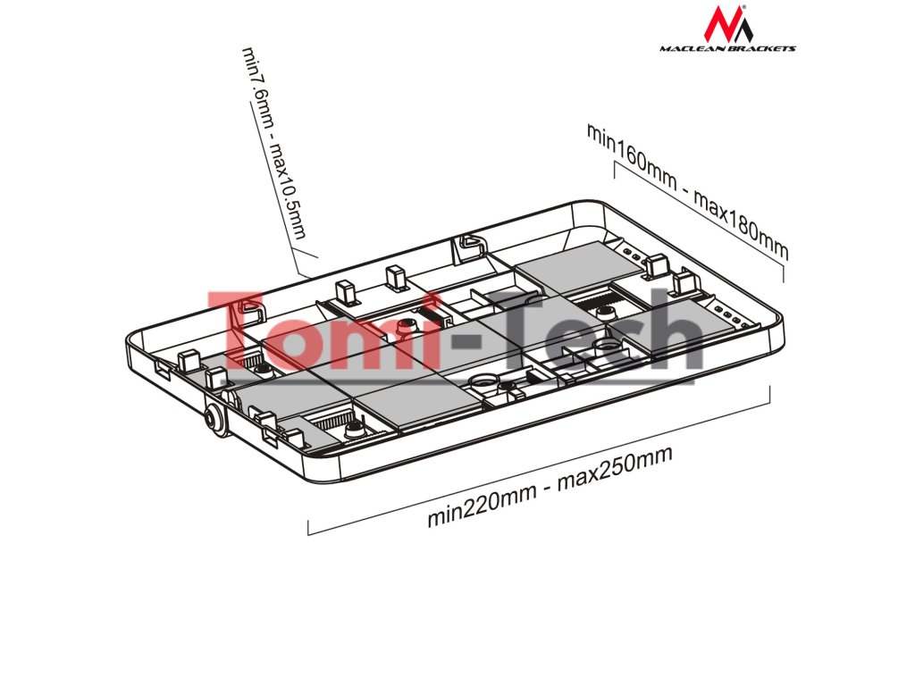 Stojan MC-645 sa vyznačuje vysoko kvalitným spracovaním a stabilnou konštrukciou, ktorá zaisťuje maximálnu bezpečnosť zariadenia umiestneného v ňom. Kryt je vhodný na montáž na vodorovné povrchy a tablet je možné umiestniť vodorovne alebo zvisle. Stojan je kompatibilný so zariadeniami ako iPad, Galaxy TAB, Goclever alebo iné tablety s rozmermi od 220 x 160 x 7,6 mm do 250 x 180 x 10,5 mm.