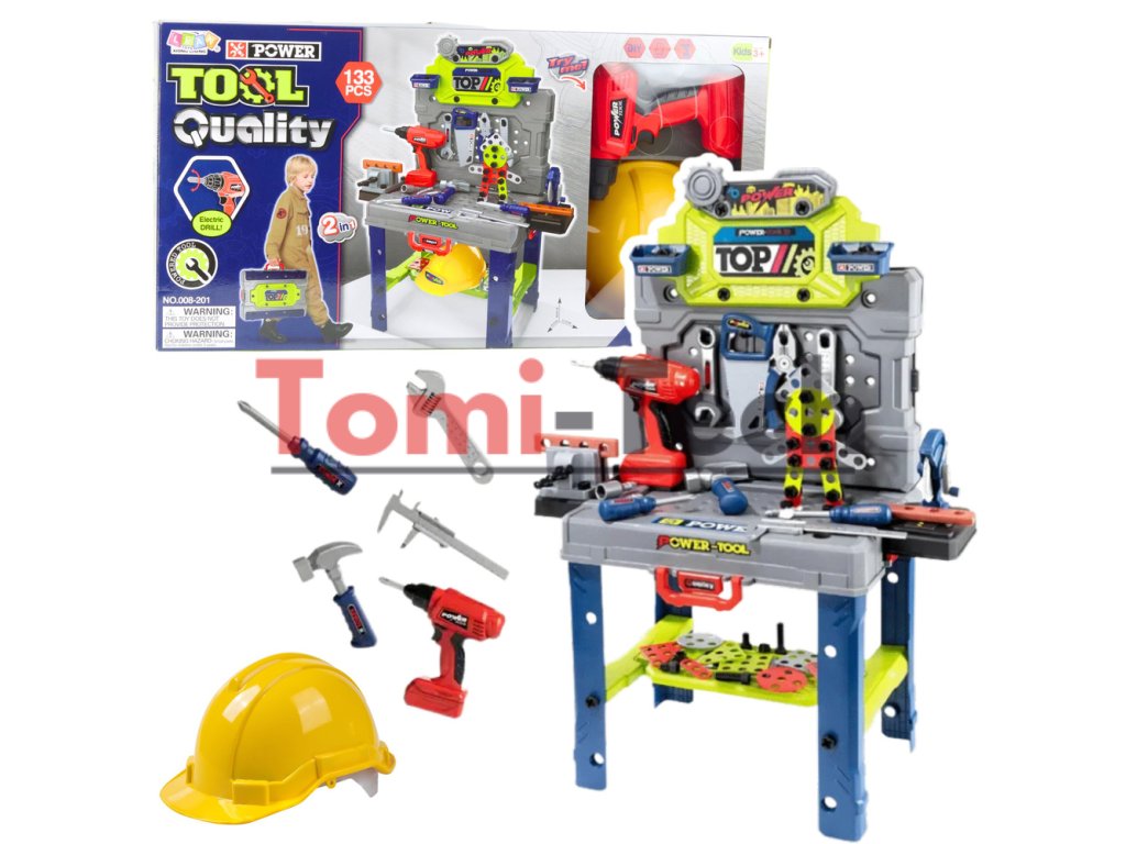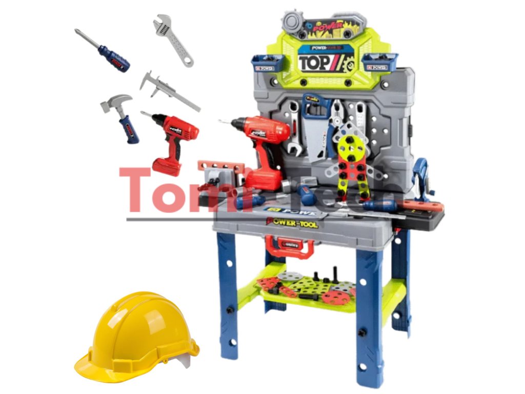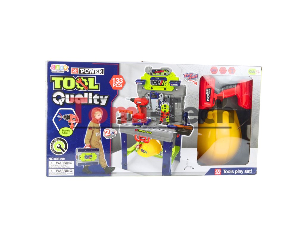 Stôl má ergonomické rozmery, ktoré zaisťujú pohodlie počas hry. Je vybavený policami a otvormi na náradie, takže všetky prvky sa dajú pohodlne usporiadať. Najväčším lákadlom súpravy je elektrický skrutkovač napájaný 2x 1,5V AA batériami (súčasťou balenia), ktorý umožňuje vŕtanie a skrutkovanie skrutiek rovnako ako v skutočnej dielni.