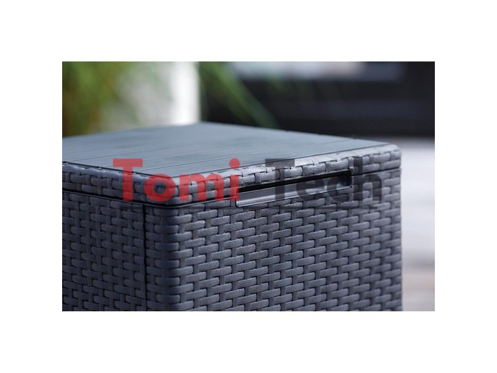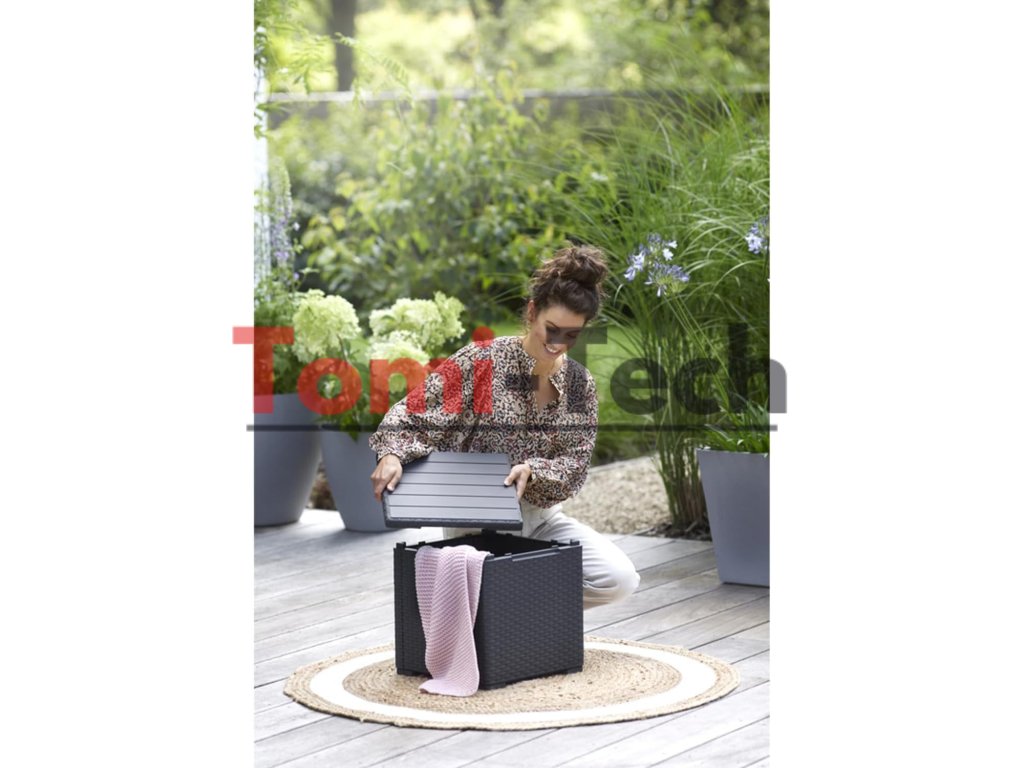 Úložný box Vigo – praktický, kompaktný stolík s dodatočným úložným priestorom. Perfektné riešenie do záhrady, na terasu alebo balkón. Vnútri uloží praktické príslušenstvo a je ideálny na servírovanie nápojov a občerstvenia.