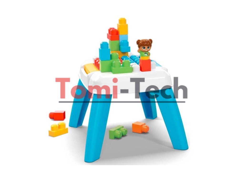 Stôl s kockami na stavanie a púšťanie umožňuje deťom objaviť nový spôsob hry. Malí stavitelia môžu pri stavaní na stole popustiť uzdu svojej kreativite. Potom môžu stlačením tlačidla aktivovať funkciu pádu, ktorá spôsobí prevrátenie konštrukcie. Kocky majú ideálnu veľkosť pre malé ručičky, vďaka čomu sa ľahko držia a stohujú, čo pomáha rozvíjať obratnosť, kreativitu a predstavivosť.
