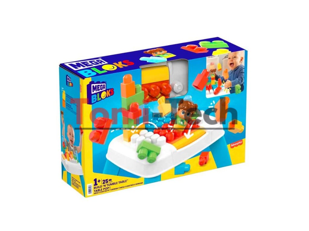 - Sada obsahuje 1 stôl s 2 funkciami pádu, 23 veľkých stavebných kociek navrhnutých pre odolnosť a 1 figúrku.