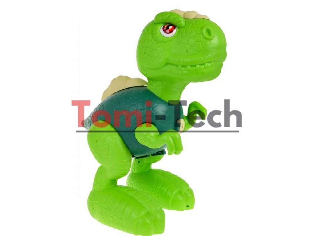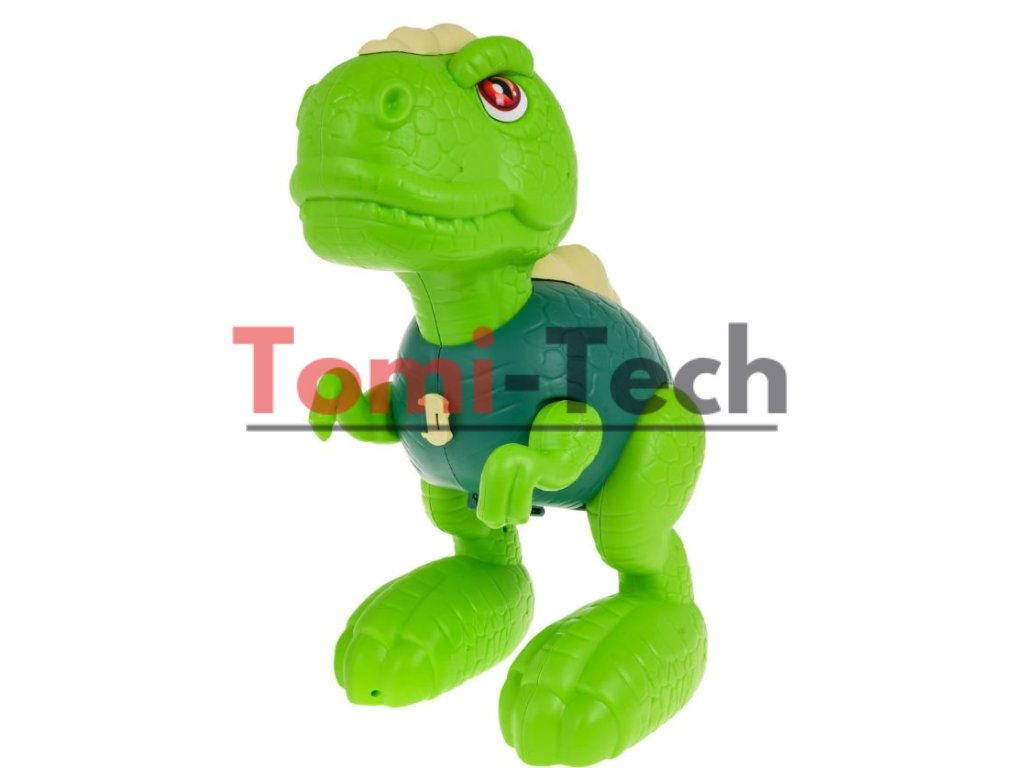 Súprava sa skladá z 55 prvkov, vrátane dielov na vlastnú montáž dinosaura a sady produktov do obchodu. Vybrať si môžeme zo skladania dinosaura - tyranosaura, ktorý sa vďaka kolieskam umiestneným na nohách pri tlačení pohybuje dopredu alebo dozadu, alebo skladanie obchodu.